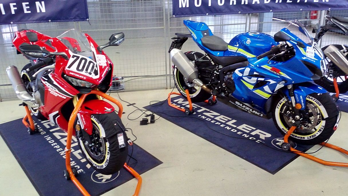 Alle Motorräder waren einheitlich mit Metzeler Racetec RR Slick vorn in K1 und hinten in der neuen K2 Mischung ausgerüstet. Diese neue K2 Mischung soll noch unempfindlicher gegen das gefürchtete Aufreißen oder nicht 100 prozentige Fahrwerkseinstellungen sein, eine deutlich höhere Laufleistung erreichen und bei so ziemlich allen Fahrbahnbelägen und Außentemperaturen funktionieren. Alles in allem des Rennfahrers Traum bzw. die altbekannte „eierlegende Wollmilchsau“! Egal was, zumindest sollte es ein gewaltiger Sprung zum Vormodell des Racetec RR – K2 sein.