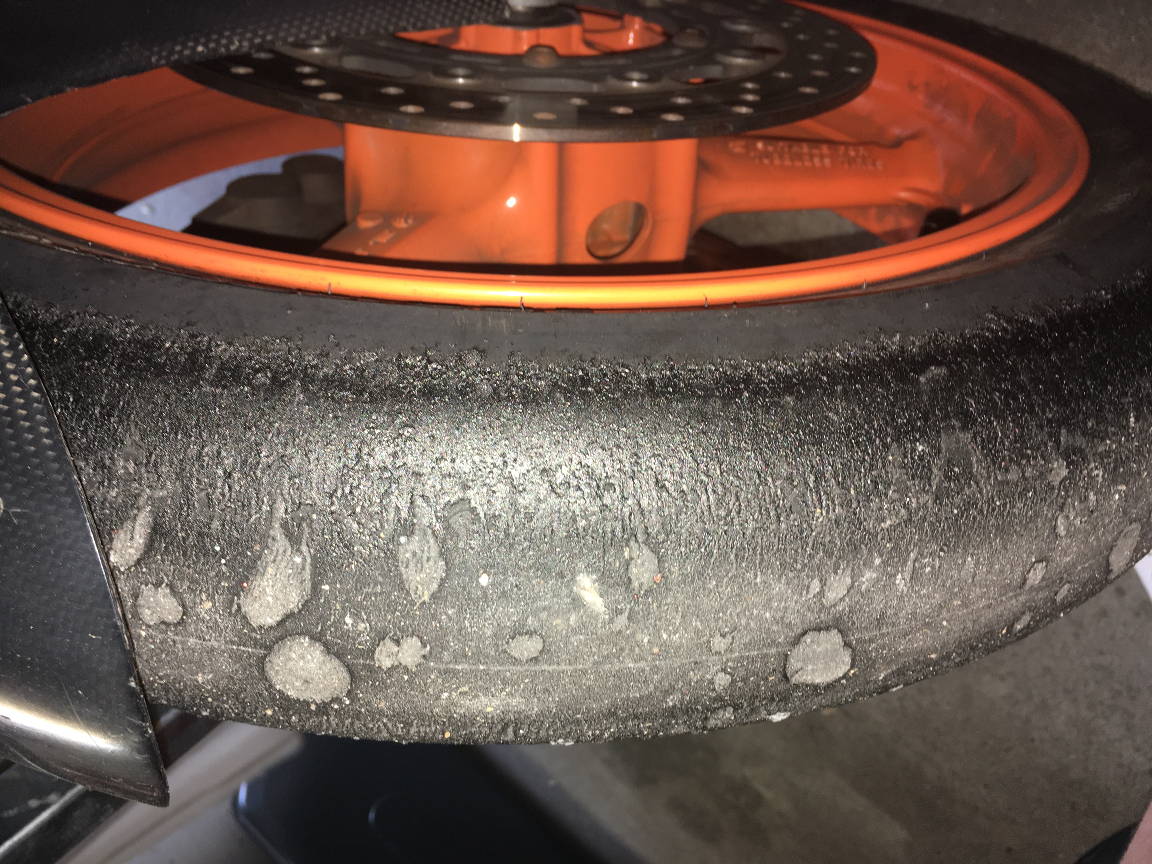 Naja in der zweiten Runde wurde allerdings abgebrochen weil es einen nach dem Shell S gepackt hat - das Moped lag aber soweit in Richtung der nächsten Rechts, dass ich davon ausgehe, dass er beim rausfahren über die Curbs gehämmert ist und die Kontrolle verloren hat.