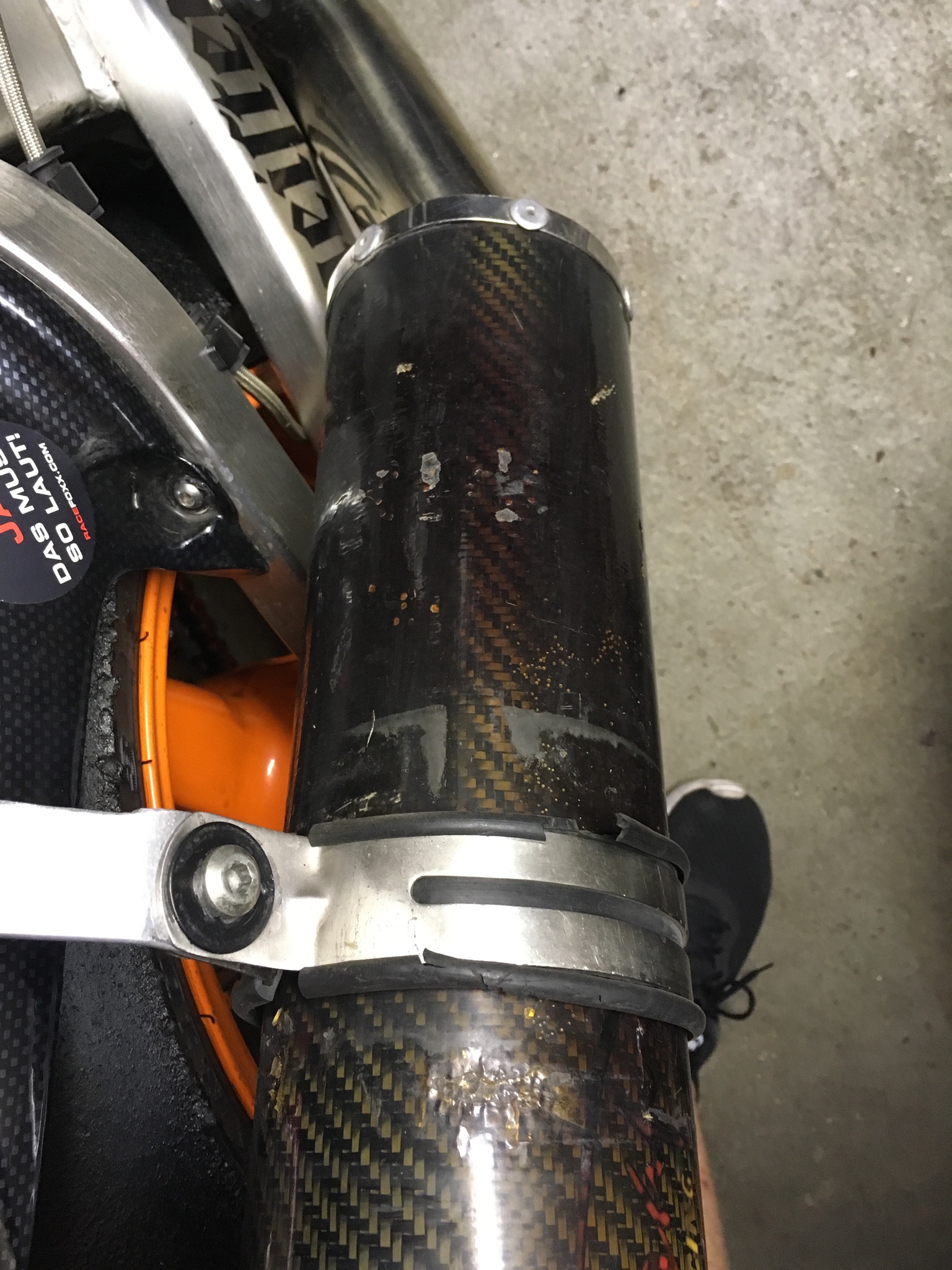 Der tolle Afrika Auspuff (so sah das Logo irgendwie aus wie Rudi feststellte) der mir aus Timbuktu oder sonst wo besorgt wurde rauchte nach dem Turn wie ein heißer Colt