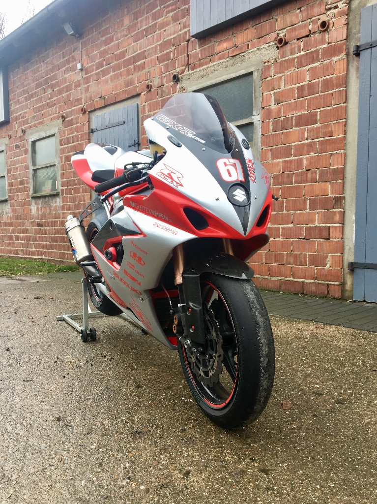 Meine K5 habe ich seit 4 Jahren, anfangs war es ein Serien Straßenbike. Damals habe ich immer zwischen Straße und Rennstrecke hin und her gebaut. Nach und nach dann mehr und mehr Zubehör und Umbauten investiert.