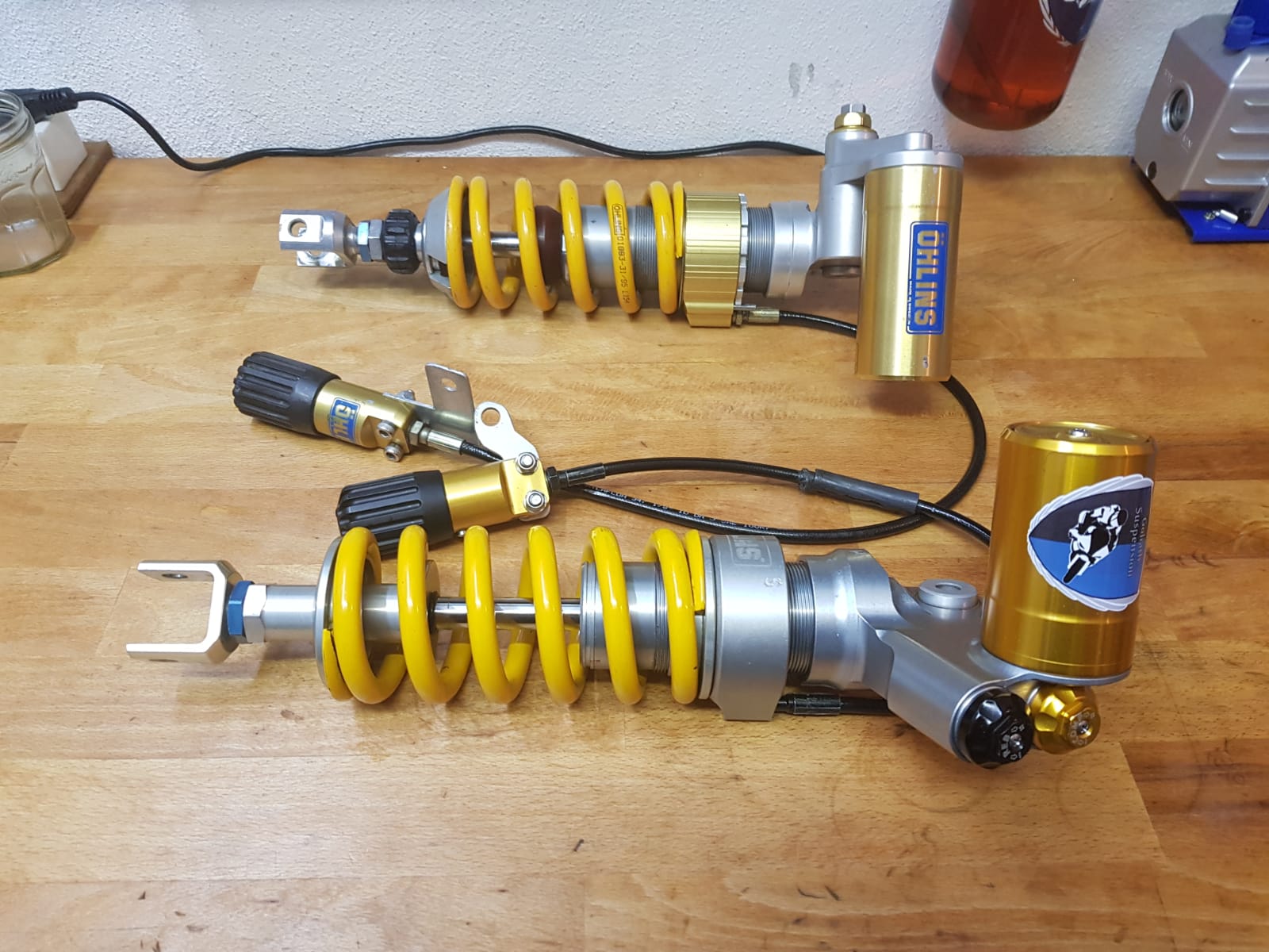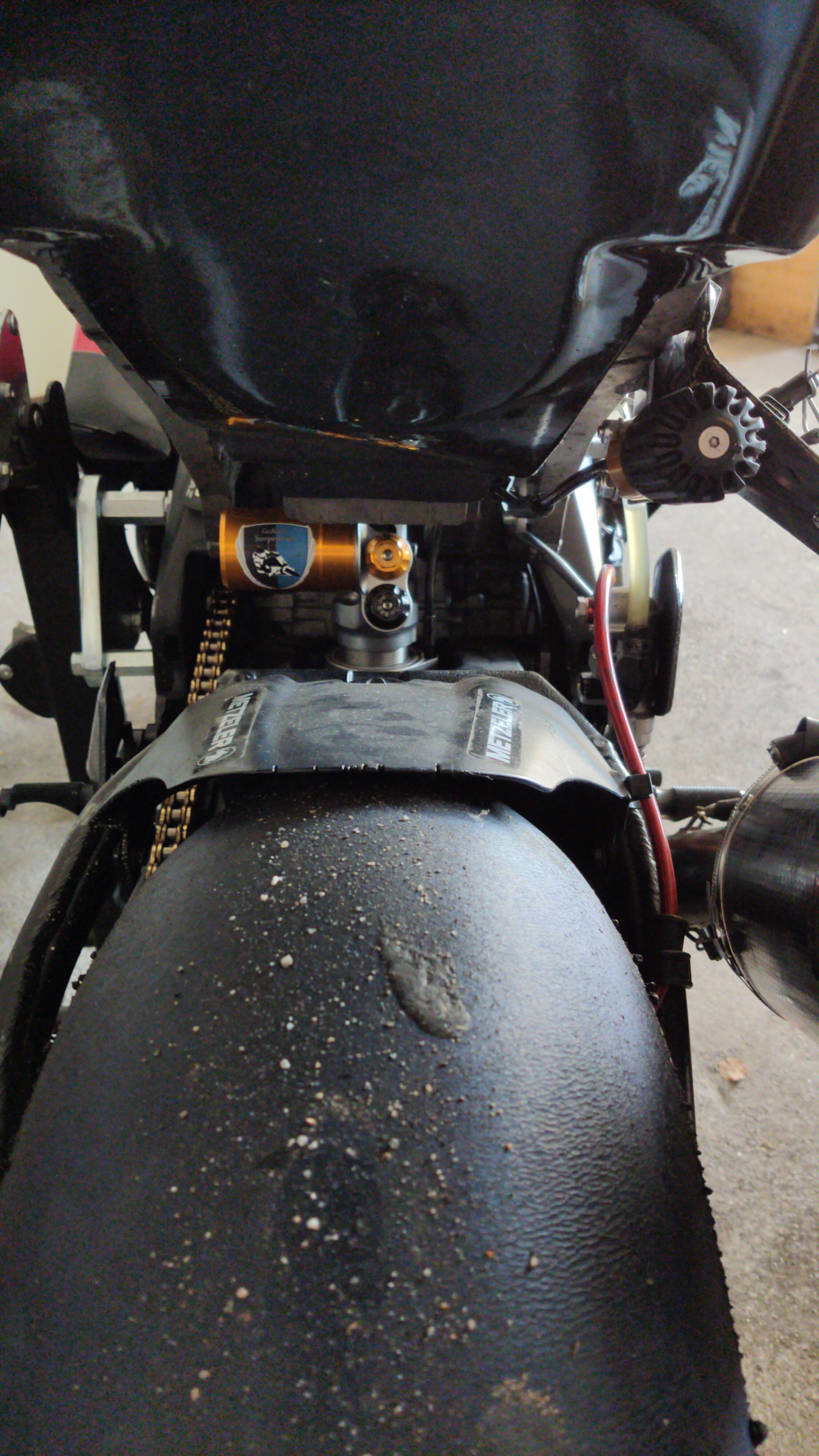 Und nachdem ich vor Ort direkt meine Gabel zerlegen, ultraschallreinigen und aufhübschen konnte, habe ich das in dem Zuge auch gemacht. Musste wegen der Halter für den Kotflügel sowieso auseinander.