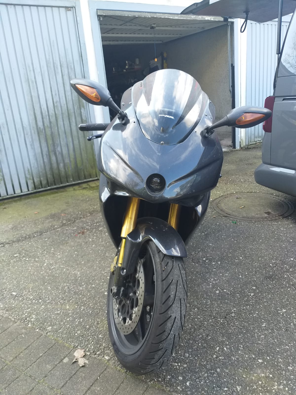 Leider hat das gute Stück eine Verkleidung die mir nicht gefällt. Es ist eine Gfk verkleidung die einer Honda 1000 sc57 usw ähnelt...