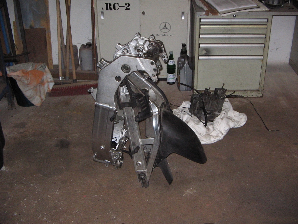Das war dann auch der Winter, wo ich einmal alles neu aufgebaut habe und den Rahmen nebst Schwinge schwarz machen lassen habe (glaube ich)