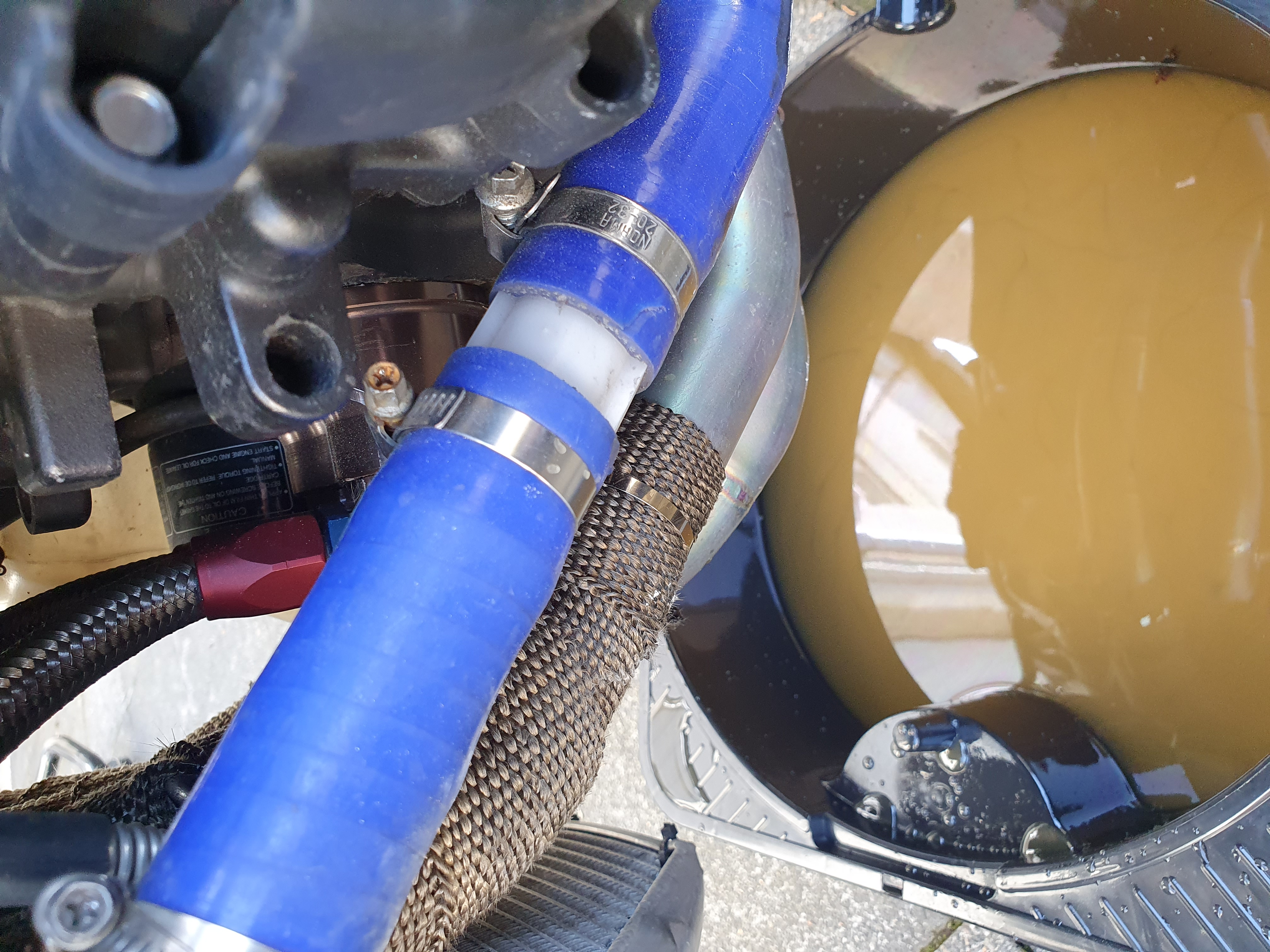 Wie man unschwer erkennen kann hab ich schönen Cappuccino, was eigentlich das Kühlwasser sein sollte. Ich habe die CBR 600 im Winter auf großen H2O Kühler umgebaut inkl. Ölkühler. Somit ist der Wärmetauscher jetzt draussen. Habe ich hier einen Fehler begangen? Normal gehen ja Öl und Kühlwasser in den Tauscher. Jetzt ist da ein reiner Ölkühler verbaut/angeschlossen. Der Motor lief vor dem Umbau ohne Probleme. Mir fällt außer eine doch defekte Zylinderkopfdichtung nichts anderes ein