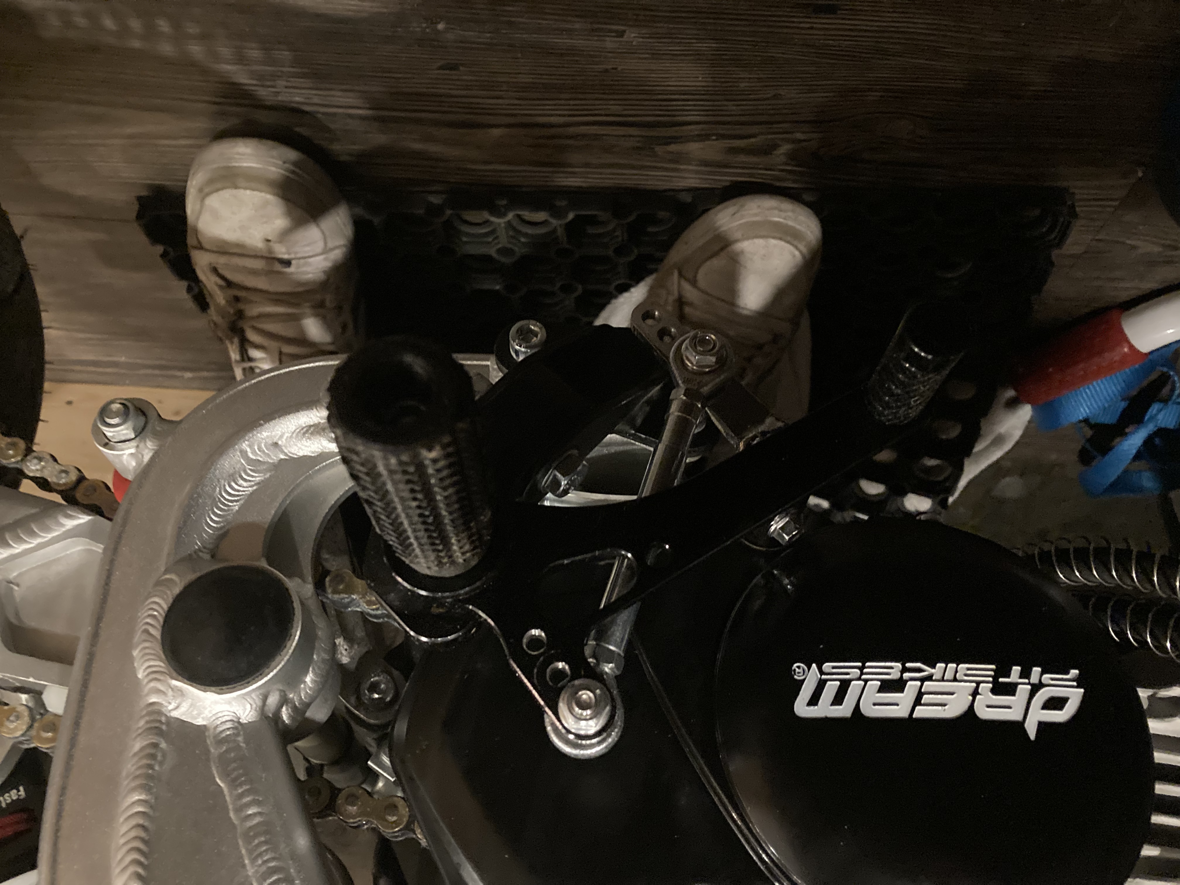 Hi, das ist die Anlage an meiner Dream Shiver. Funktioniert, ist aber alles eng und hakelig. Es klappen nicht alle Positionen der Rasten. Die Höherlegung ist von einer anderen Anlage, hatte aber die XFront auch schon drauf. Die Rasten sind andere, weil mir die XFront zu rutschig waren, aber an der Installation ändert das nichts. Die rechte Seite kann ich nicht installieren wenn ich den Kickstarter behalten will. Also entweder schieben, oder den originalen Bremshebel drauf lassen. Das Moped ist gerade schon im Bus verladen, daher sind die Bilder nicht so mega. Wenn du noch etwas im Detail brauchst, sag Bescheid.