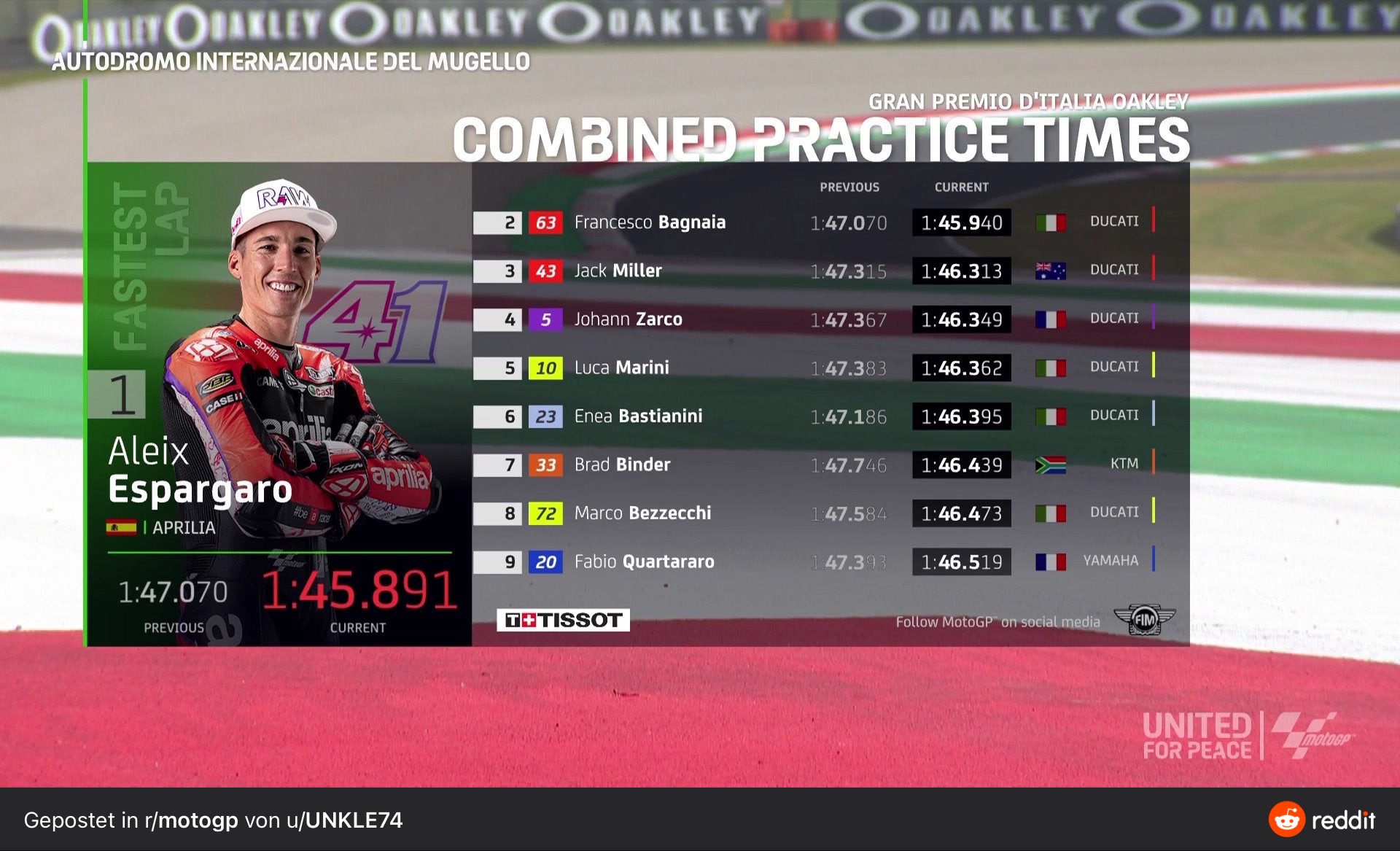 Spass bei Seite, Digis erste Pole, nur Ducatis sowiet das Auge sehen kann.