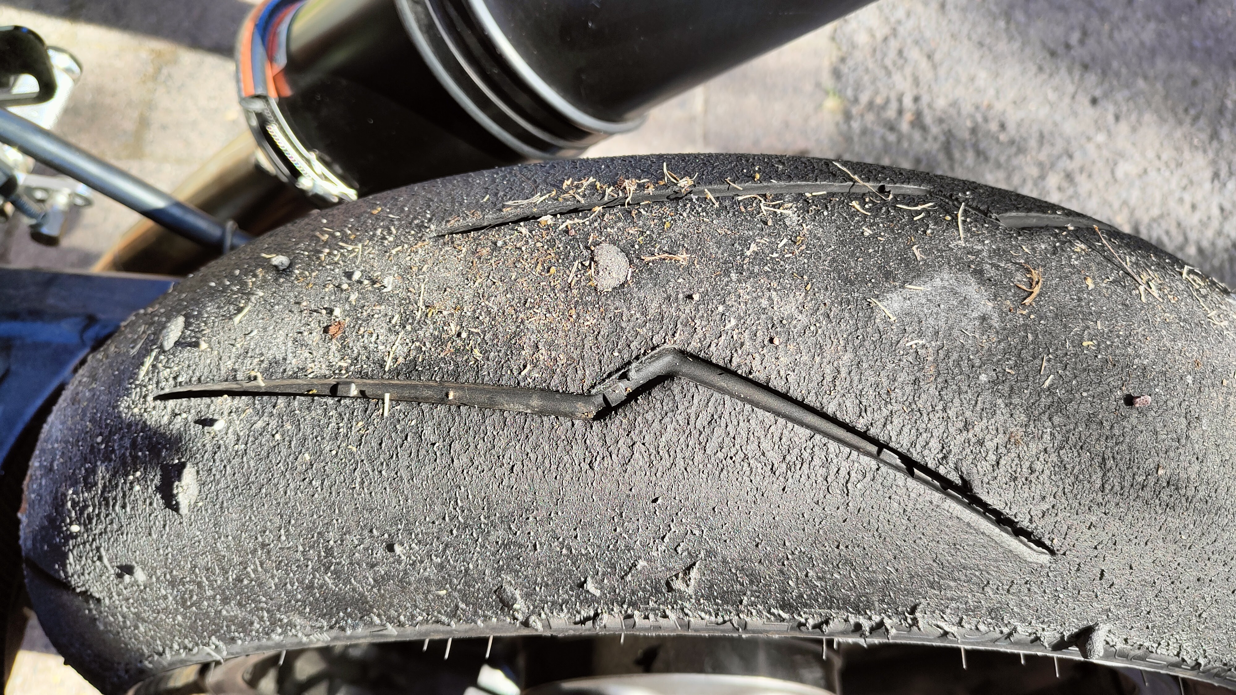 Am Hinterrad kann man ganz hervorragend erkennen, dass Du in Schräglage kein Gas gibst, sondern bis zum späteren Kurvenausgang wartest, aufrichtest und dem Reifen dann richtig was auf die Mütze gibst. Mit Fahrwerkseinstellung hat das wenig zu tun, sondern nur mit deiner rechten Hand.