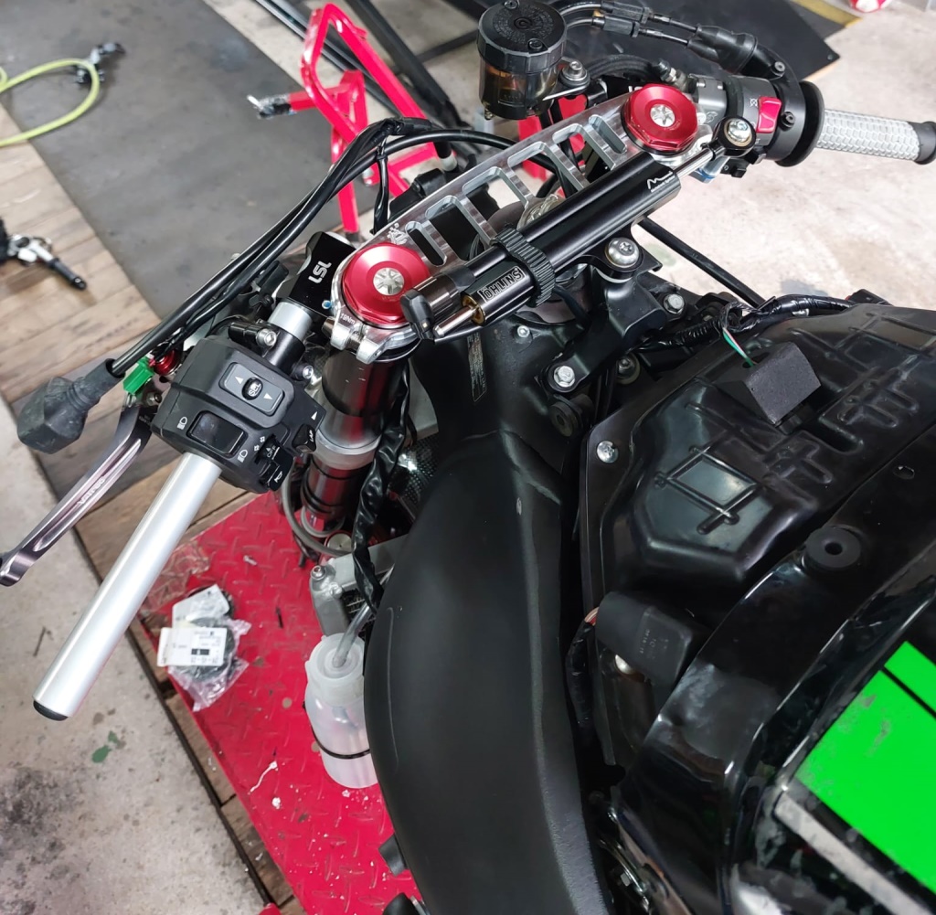 Da jetzt eh schon alles hinhüber war (inklusive der Schutzkleidung) dachte ich mir, machen wir es doch gleich richtig. Ich wollte eh schon lange mal weg von dem Mix aus Serienbike und paar Rennkomponenten hin zu nem richtigen Racebike. Daher wurde folgendes neu gemacht: