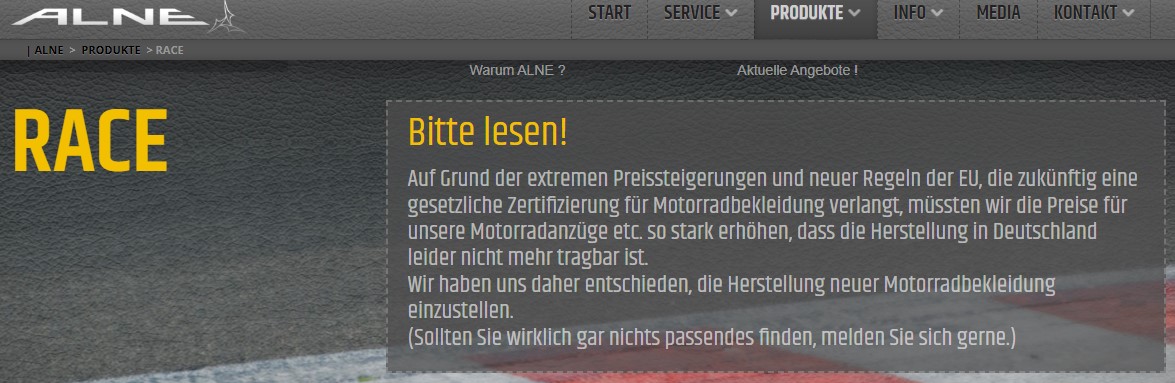 Re: Alne hat die Herstellung von Masskombis eingestellt