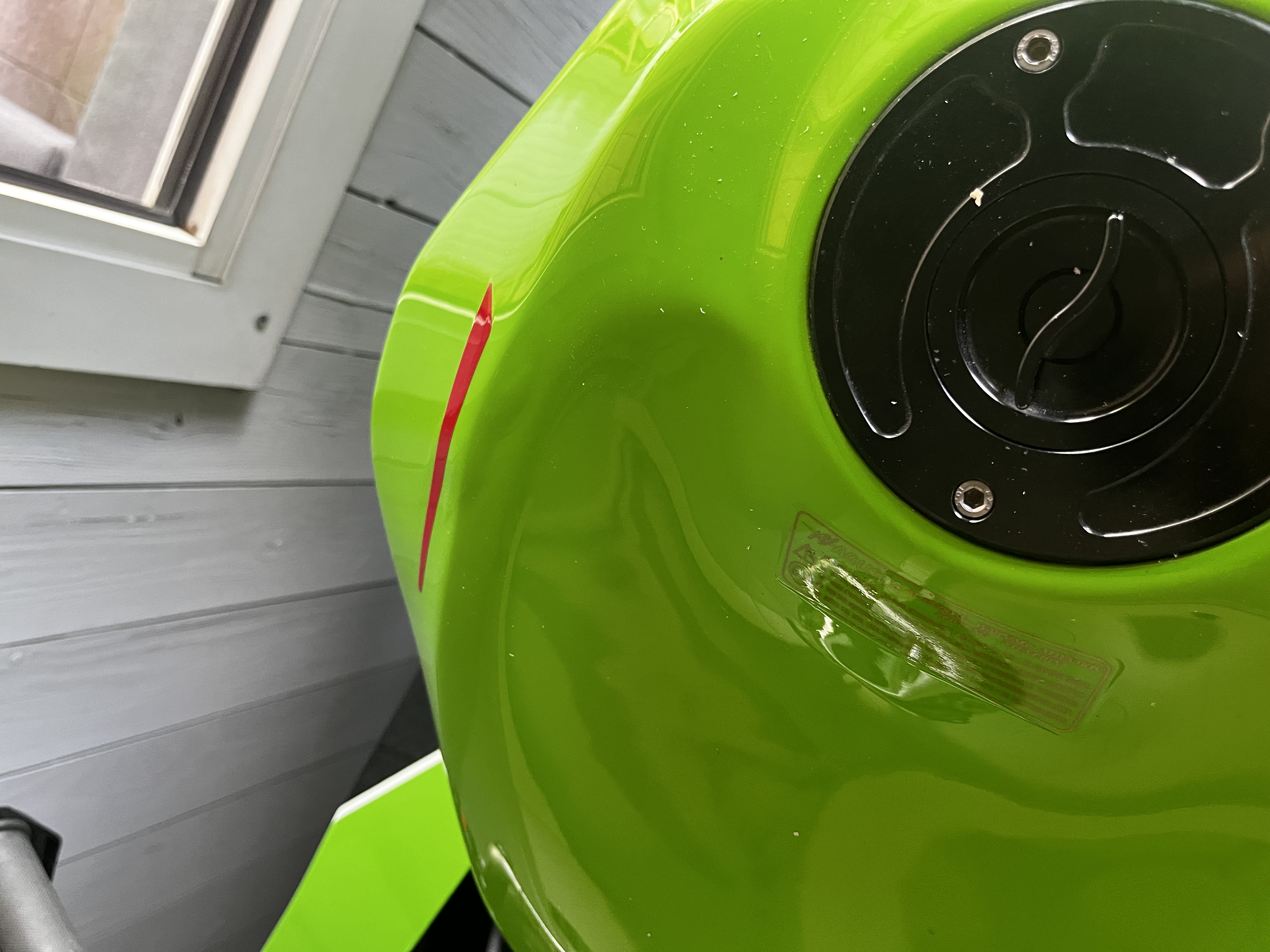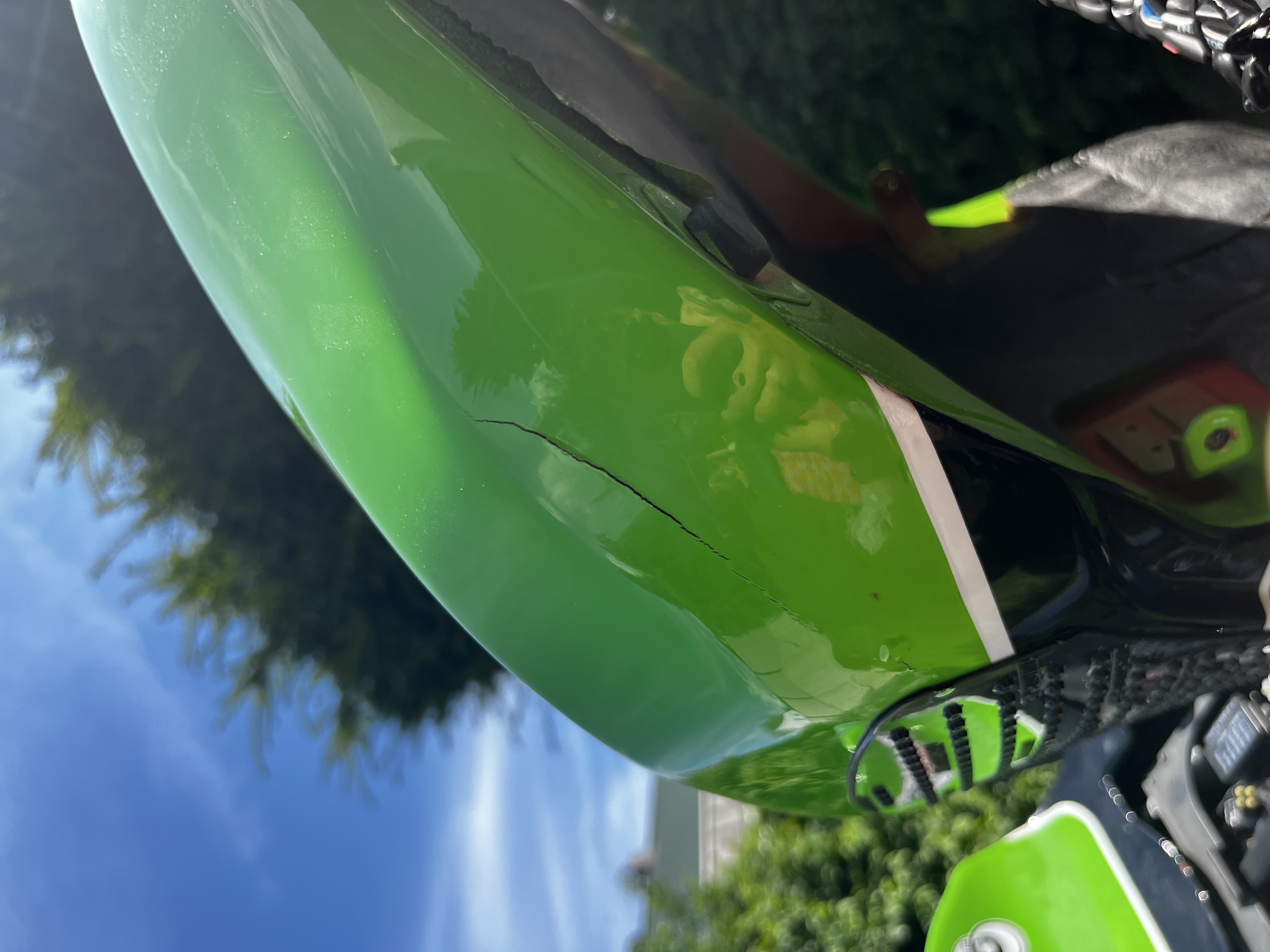 Ich habe jetzt das Hobby neu angefangen und habe mir eine Kawasaki Zx10R von 2008 für die Rennstrecke gekauft. Natürlich hatte ich wie immer „Glück“ und habe die Katze im Sack gekauft und benötige Hilfe. Der Tank ist anscheinend undicht und gast aus sodass der Lack blasen bildet und die Spachtelmasse aufreißt. Leider wusste natürlich keiner von dem Schaden und nun stehe ich da. Ich habe in zwei Wochen meine ersten Rennstrecken Trainings und leider gibt es bei Kleinanzeigen auch keinen Ersatztank. Hättet ihr eine Idee was ich machen könnte in der kurzen Zeit? Ich bin um jeden Hilfe dankbar!