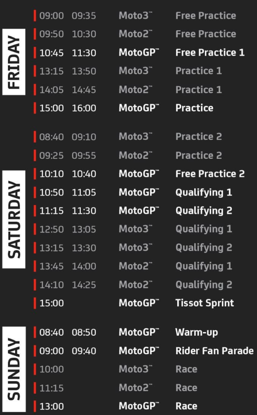 Misano die 2. Aktuell sieht es an der Spitze der WM folgendermassen aus: Der offizielle Zeitplan: Wie ihr euer Empfangsgerät zur richtigen Zeit einstellen müsst steht im entsprechenden Post von TVBiker.