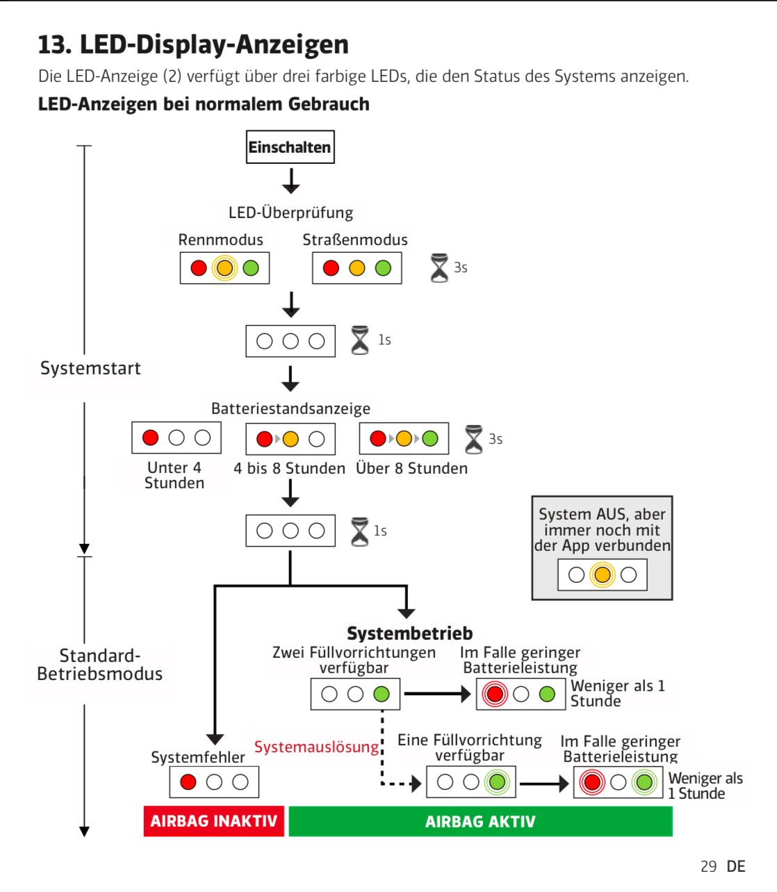 Wenn ich die Betriebsanleitung noch richtig in Erinnerung habe, dann ist der Airbag im Race Modus direkt aktiv, sobald du die Kontakte vor der Brust verbindest, aber auslösen wird er erst ab 70 kmh.
