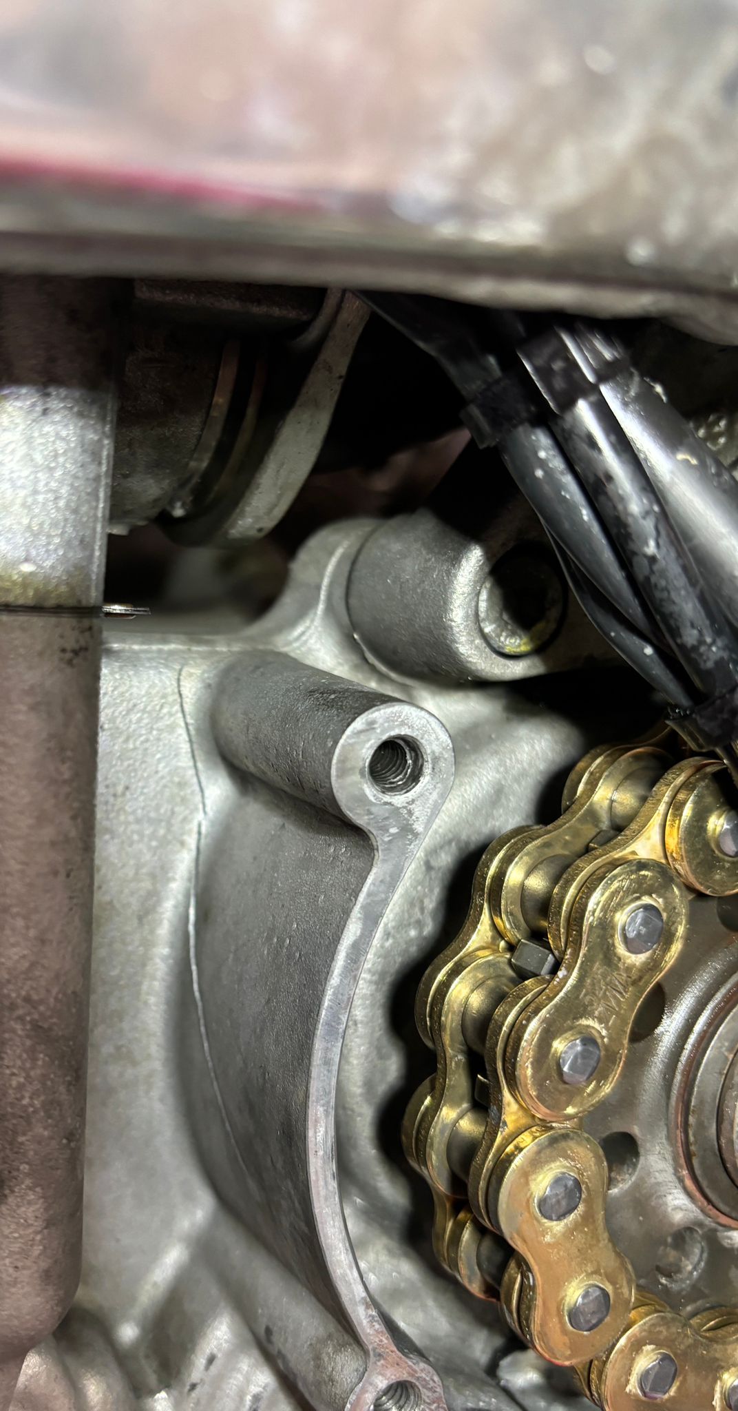 Heute habe ich mein Motor eingebaut in meiner R6 rj15, leider ist aus lauter Dummheit, ein Stück vom kettenschutz halterung abgebrochen am Motorblock beim Ritzel mittig.