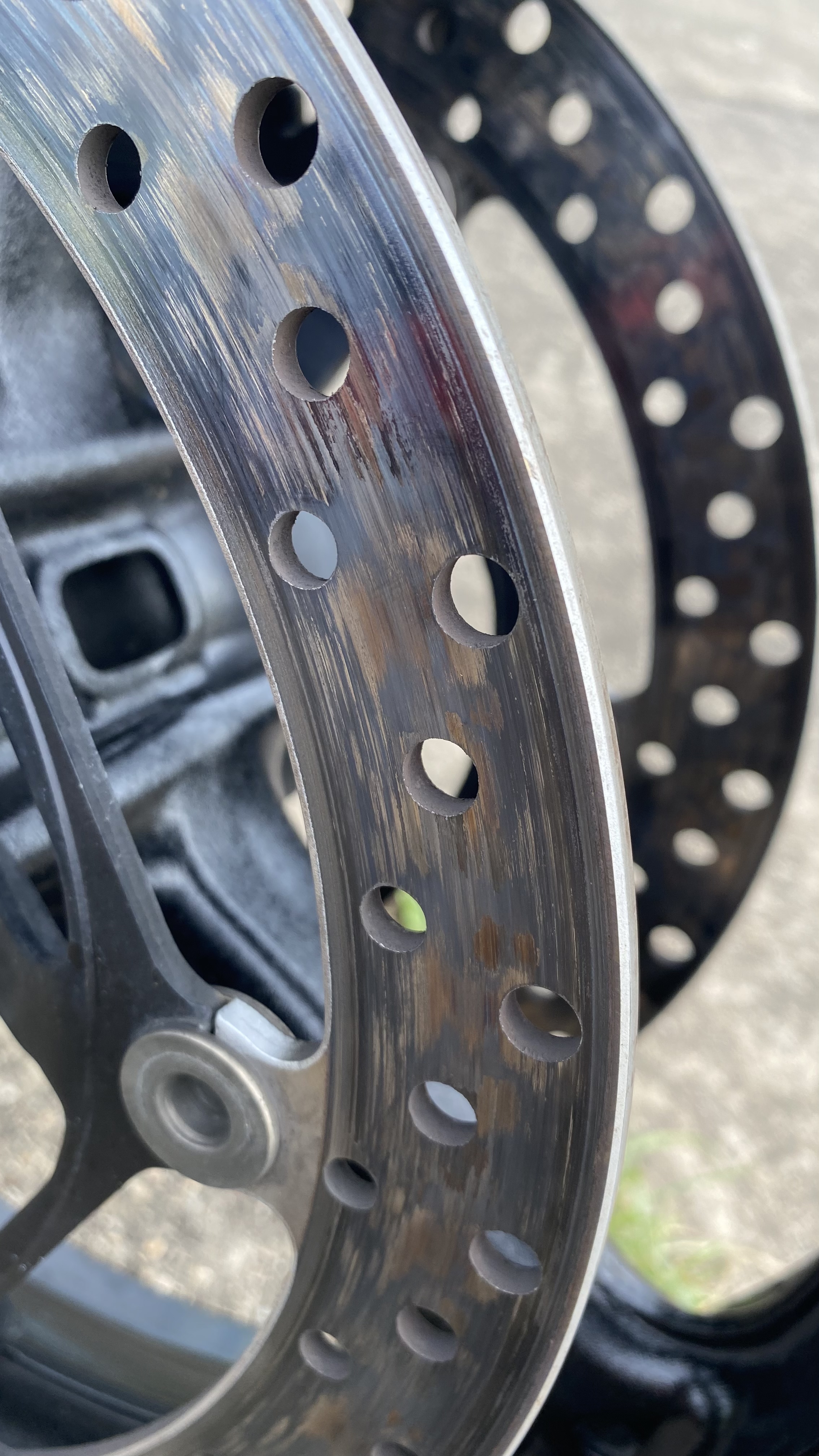 die Bremsscheiben an meiner Honda sc 59 haben so komische Flecken bekommen, hab das erst heute bemerkt. Sind diese ausgeglüht oder dergleichen?