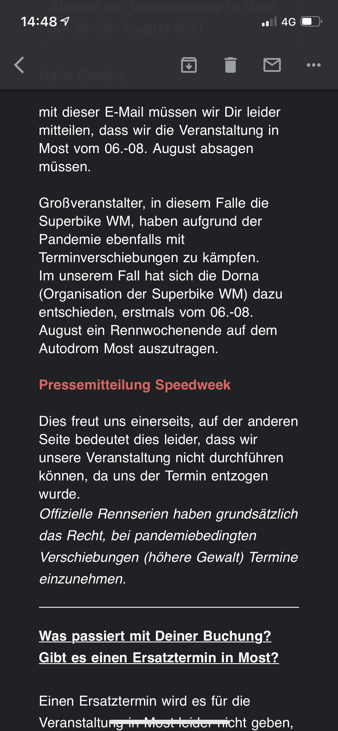 Hafeneger musste Most 6.8-8.8 absagen. Die WSBK WM hat den Termin bekommen und somit hat Hafeneger den kürzeren gezogen . Also ohne deren Verschulden oder ähnliches
