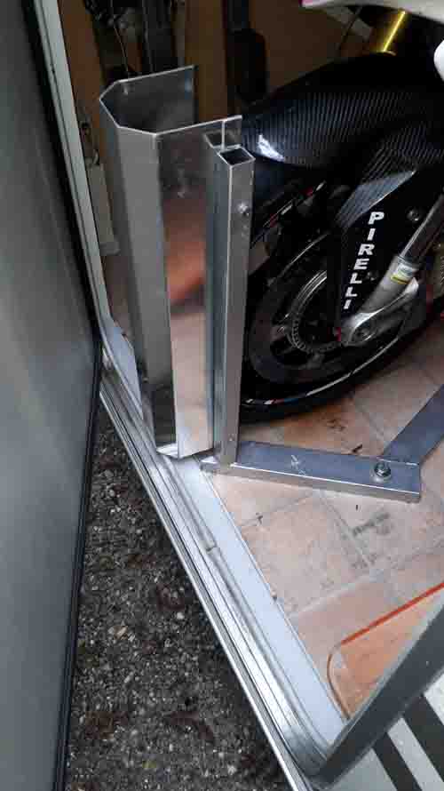 Bis jetzt habe ich das Motorrad immer etwas diagonal unters Bett geparkt, weil es aufgrund der Länge zzgl. Der Motorradwippe nicht anders gepasst hätte. Im Tango ist zwischen den beiden vorderen, seitlichen Türen fast auf den Zentimeter genau so viel Platz wie meine Rakete eben lang ist. Nun hab ich mir etwas gebastelt, was die Beladung einfacher macht.