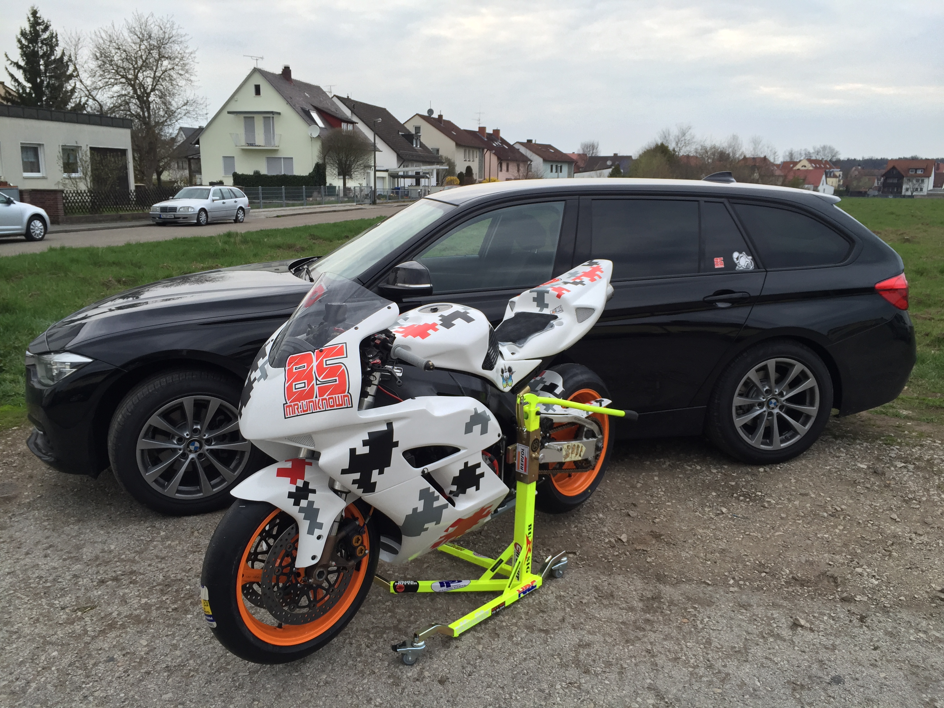 Hier meine Dicke, treue Begleitung seit Jahren. Trotz ihrer Jahre hat sie ihren Spaß daran BMWs zu jagen (und damit meine ich nicht den 3er im Hintergrund) 8)