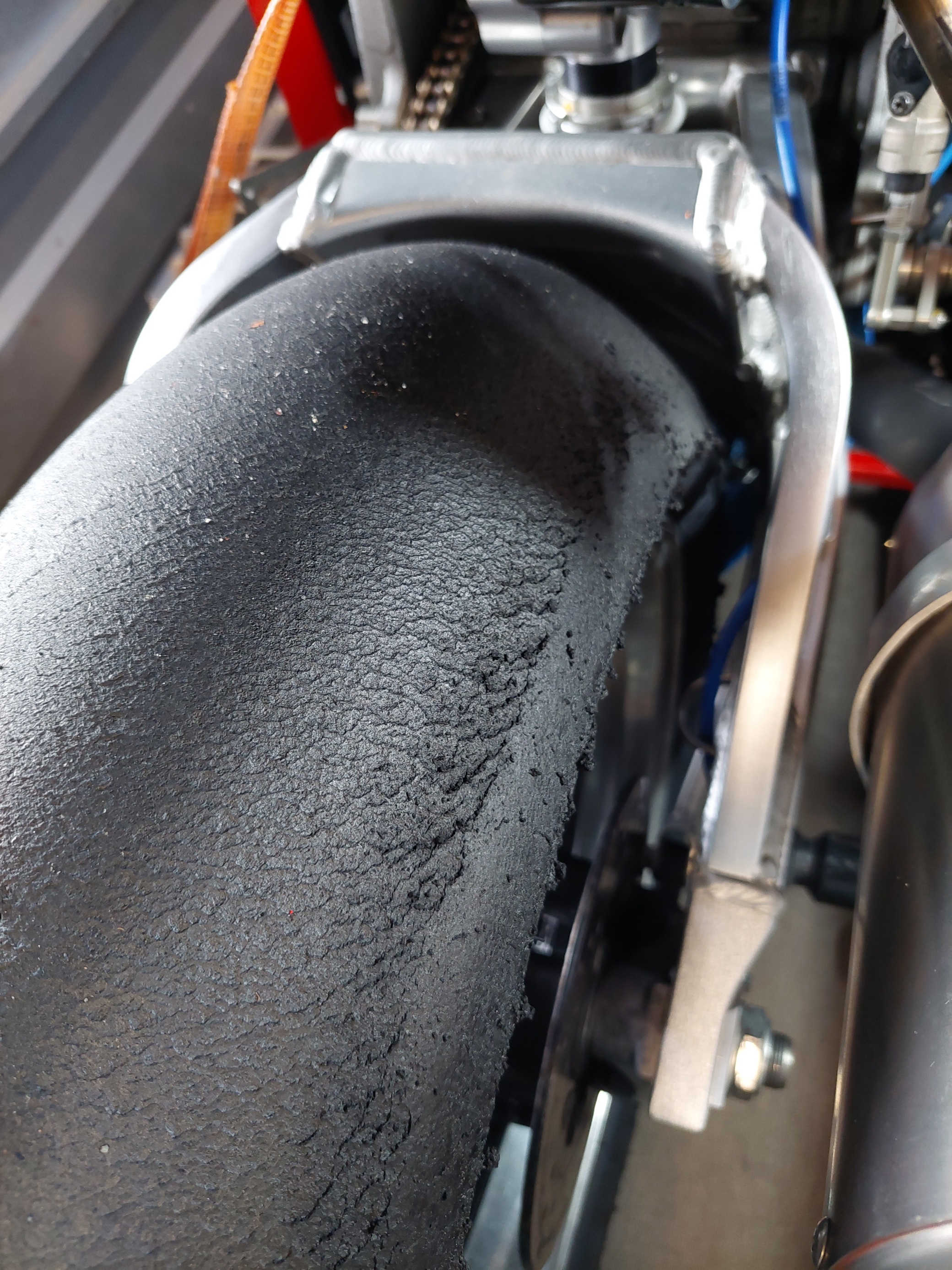 Ich habe den 24'er in Aragón getestet, werde aber aufgrund des Verschleiß Verhaltens auf der HA beim V02 bleiben. Der 24'er hat einen bemerkenswert hohen Anfangs Gripp, der nur unwesentlich nachlässt. Bin den Slick am zweiten Tag gefahren, und direkt meine Bestzeit von 2.06 gefahren. Der Reifen vermittelt ein Quäntchen mehr Feedback im Vergleich zum BS, aber das Verschleiß Bild sieht schon nach dem zweiten Turn so aus:Assa hat geschrieben: