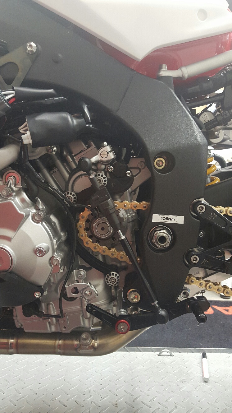 Die Winkel lassen sich ja alle einstellen über gewisse Möglickeiten. Das habe ich soweit optimal hinbekommen (s. Foto). Allerdings lässt die R1 sich serienmäßig extrem schwer schalten und besser geworden ist das mit dem anderen Hebel nicht. Ich bin gerade auf der Suche noch einer Lösung. Ich werde wahrscheinlich mal mit einer Schaltwellenabstützung anfangen. Die schlackert nämlich schon 2/10mm rum...