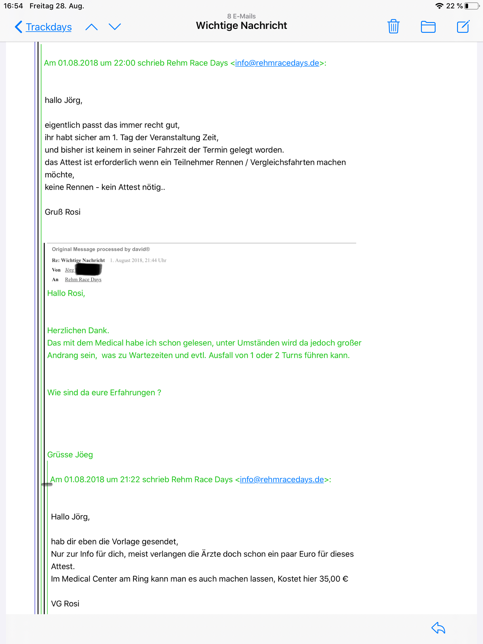 Aber das Attest wurde auch ohne Rennteilnahme verlangt.