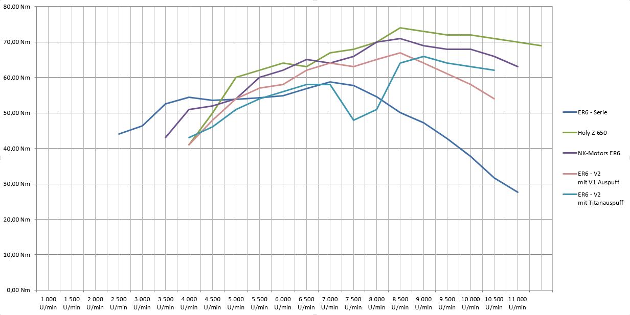 Drehmomentvergleich verschiedener ER6 / Z650 Motoren: