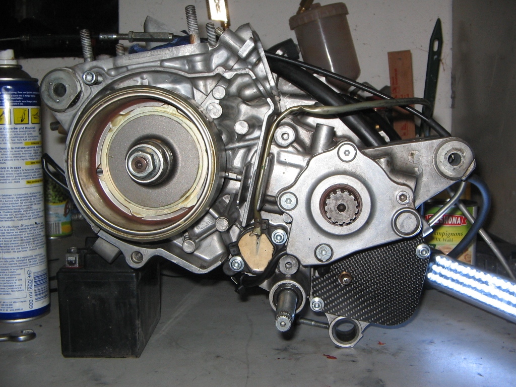 Als echter Tuner hab ich also nicht für einen ersten Ausflug die Lampen abgeklebt und die Spiegel abgeschraubt, sondern stattdessen alles rausgeworfen, was nicht gebraucht wird, das komplette Heck umgebaut, weil ich auch einen umgebauten Heckrahmen bekommen hab und so aber auch mal eben knapp nur noch 132Kg mit Getriebe-, 2T-Öl und ein paar Litern Sprit gewogen. Bei irgendwo um die 56-60Ps am Rad schon okay.