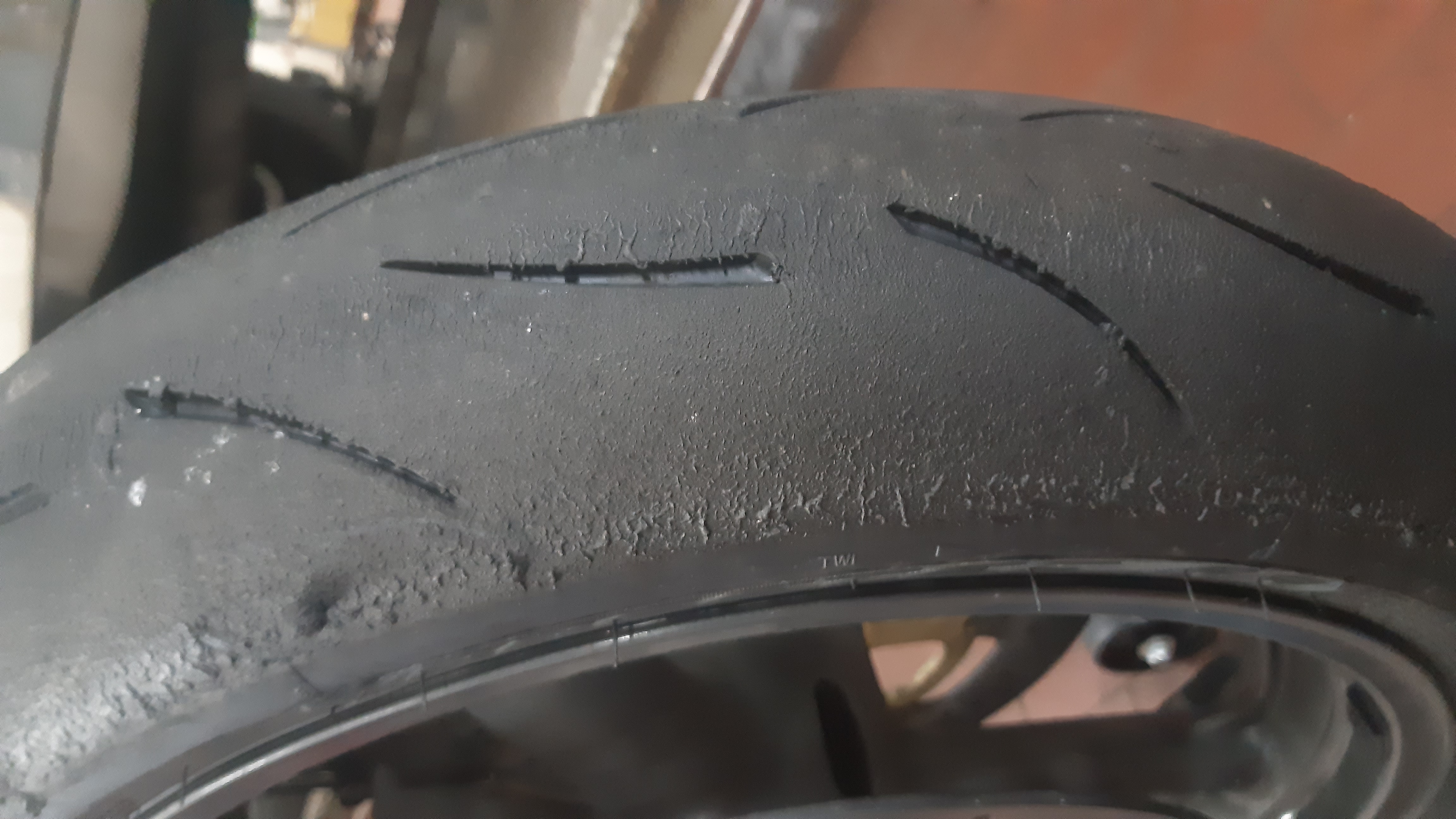 Fast alle aktuellen Metzeler/Pirelli sehen so aus, liegt am Produktionsverfahren....diese "Rillen" kannst du bei deren Slicks bereits im Neuzustand so erkennen....