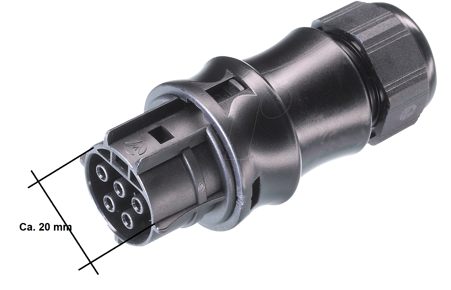 Für meinen Generator nutze ich den RST 2015S (5 Kontakte) mit 400V bis 20A pro Kontakt. Dabei misst Buchse und Stecker nur 20 mm im Durchmesser. Für einen Anhänger genügen sicher 3 Kontakte, dieser ist nochmal kleiner. Es gibt das System mit Dichtungen bis IP69 (mit Schutzkappe im nicht gesteckten Zustand).