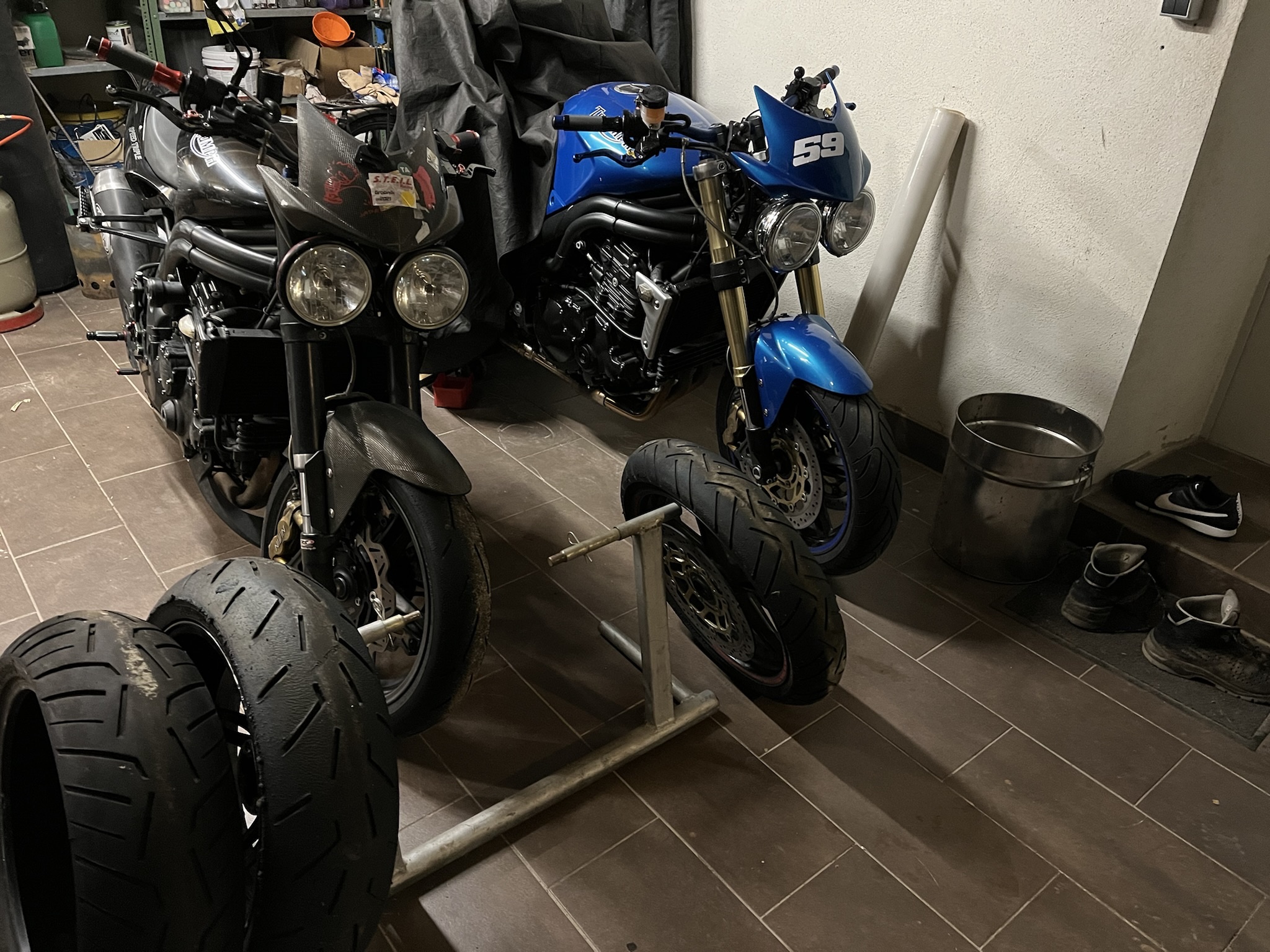 Die schwarze kam diesen Winter dazu und wird nur für die rennstrecke dienen, die Blaue wird auch auf der Straße gefahren und dient als backup für die Rennstecke