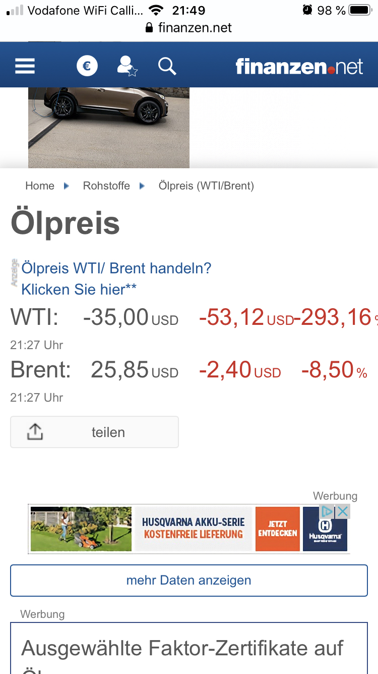 Der Ölpreis am Aktienmarkt hatte in dieser Zeit allerdings auch ein wenig an Schwung verloren.Magnum1 hat geschrieben:Veilseid hat geschrieben:1,20€? Ja, 1995Rudi hat geschrieben:In Österreich vermutlich