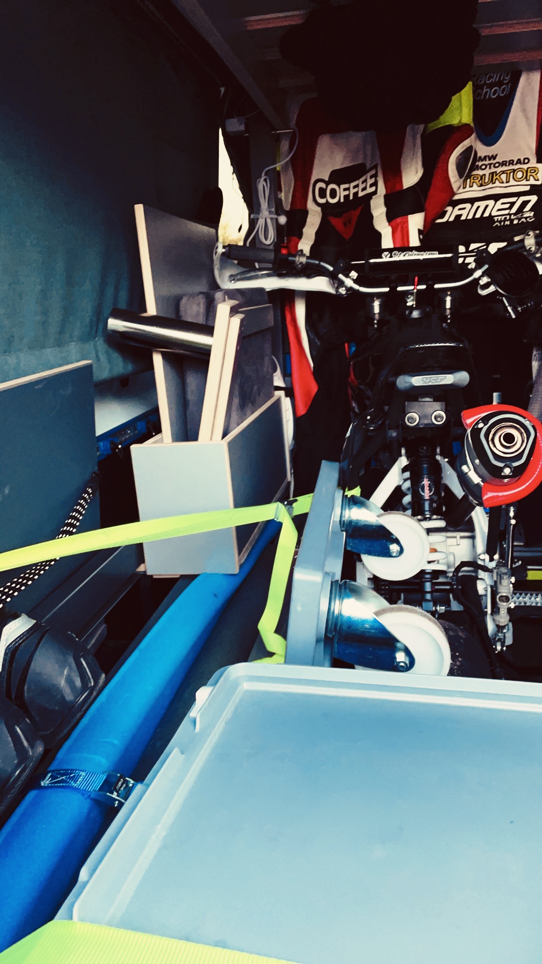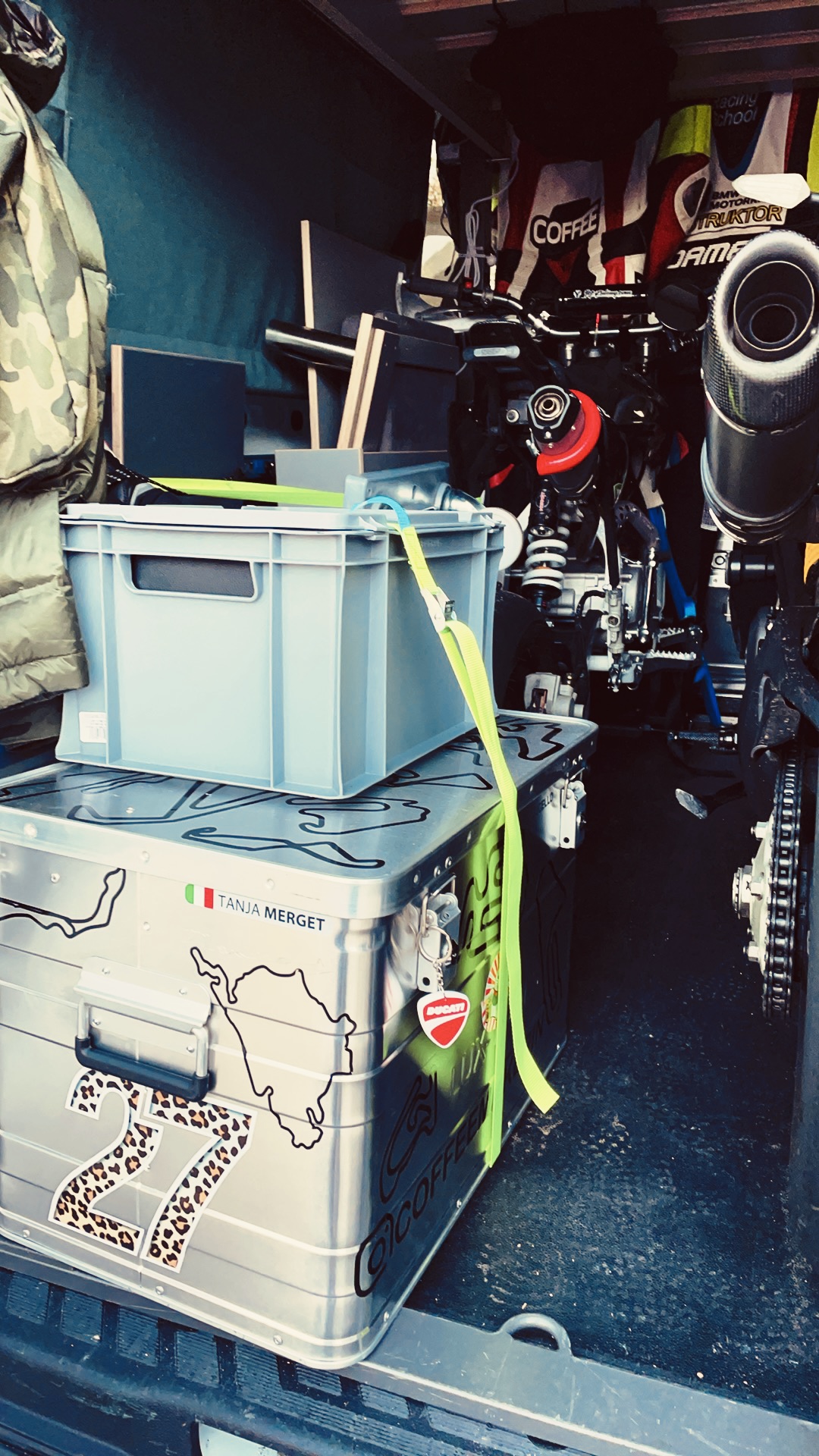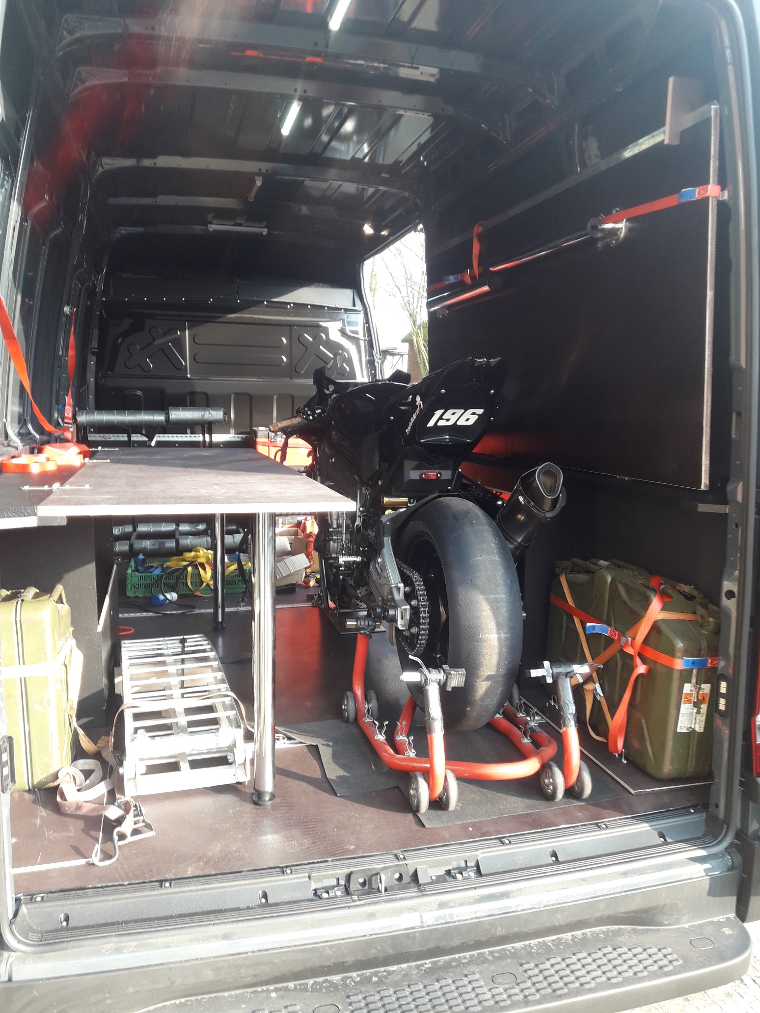 Hier mal mein Transporter mit Einbau und Beladung :-) Habe mir im September das Quickout System gegönnt und bin mega zufrieden. Jetzt hat alles seinen Platz und das Reisen auf die Renne macht so richtig Spaß.