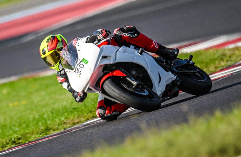 Am Hinterrad kann man ganz hervorragend erkennen, dass Du in Schräglage kein Gas gibst, sondern bis zum späteren Kurvenausgang wartest, aufrichtest und dem Reifen dann richtig was auf die Mütze gibst. Mit Fahrwerkseinstellung hat das wenig zu tun, sondern nur mit deiner rechten Hand.