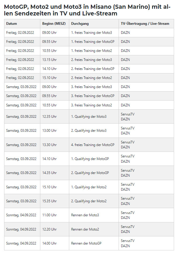 Re: Sendezeiten GRAN PREMIO GRYFYN DI SAN MARINO E DELLA RIVIERA DI RIMINI 02.-04. September 2022