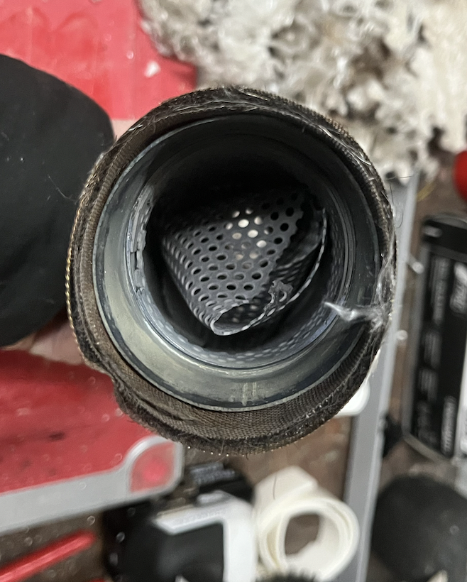 Als ich den Topf demontiert habe, ist mir das innen verbogen und komplett in den Querschnitt eingebogene Lochblech aufgefallen. Mein laienhaftes Auge hatte sofort die Vermutung, das das so nicht oginool ist. So wundert es mich nicht, dass ich immer rund 5s langsamer bin, als ich das von mir erwarte...