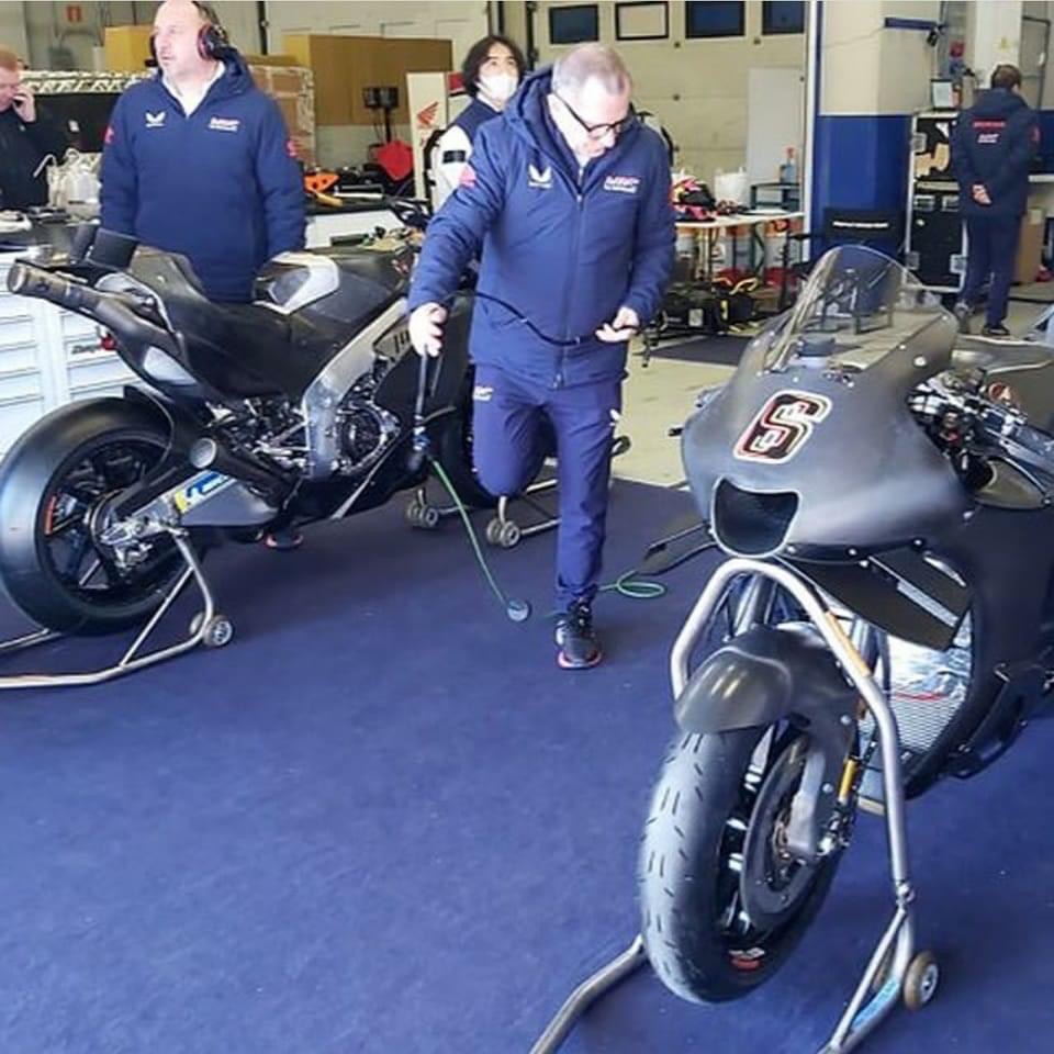 Hier Bilder von heute, SB6 testet die neue RCV in Jerez mit neuem Rahmen, Akrapovics, neue Verkleidung in Mischung aus Ducati und Aprilia, bei Honda tut sich was: