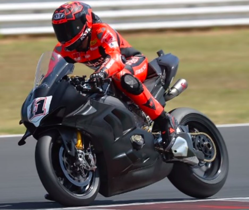 Hier ein Bild von Bulega bei besagtem Test. Angenommen Bulega sollte nächstes Jahr den Platz von Rinaldi bekommen, welchen Sinn würde es machen, ihn mit einer V4S fahren zu lassen, die im Gegensatz zur V4R eine völlig andere Leistungscharakteristik hat? Die V4S hat 1100ccm und dreht 13000, die V4R hat 999ccm und 16000 U/min.