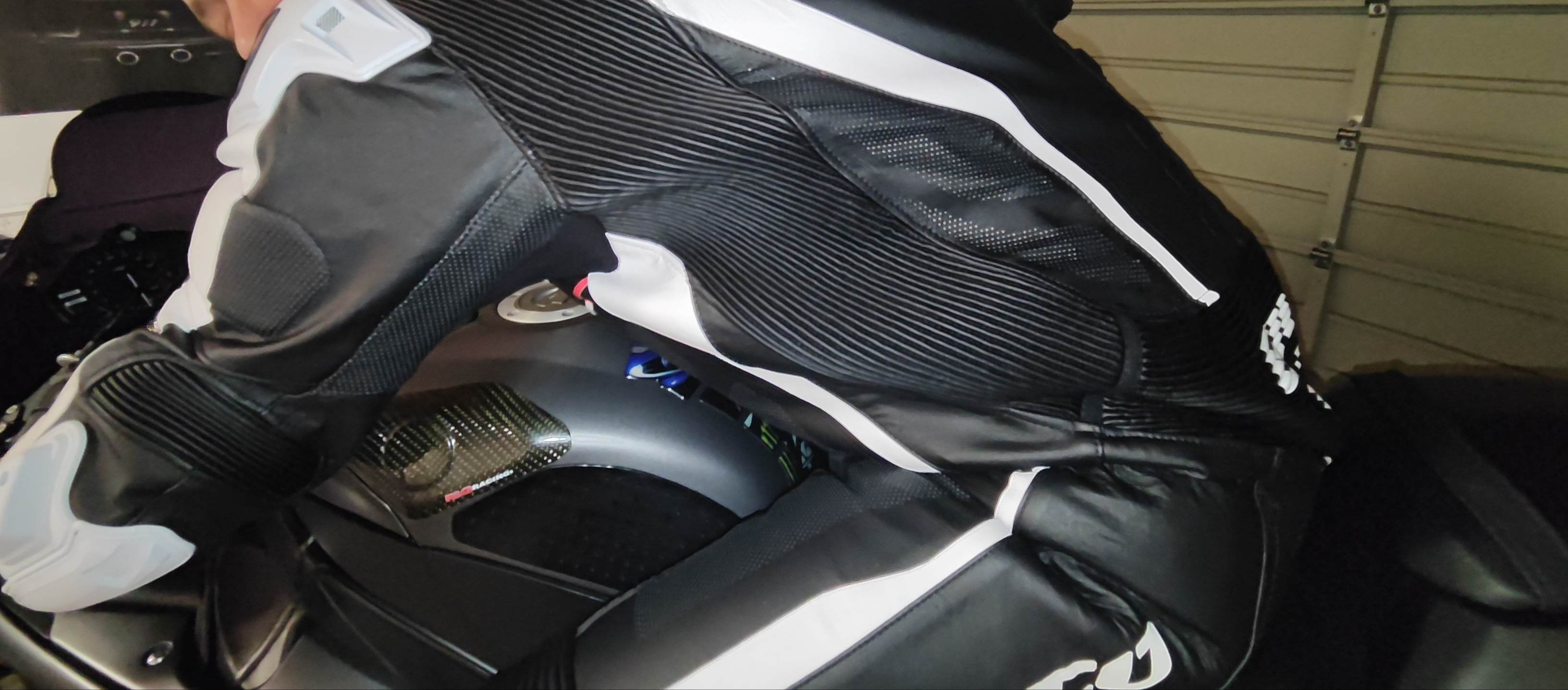 Anzug an den Waden so eng das die billigen Reißverschlüsse nach kurzer zeit aufgeplatzt sind. Würde man sich bestimmt freuen wenn das beim Sturz passiert wenn z.B der Airbag aufgeht und es eng wird.