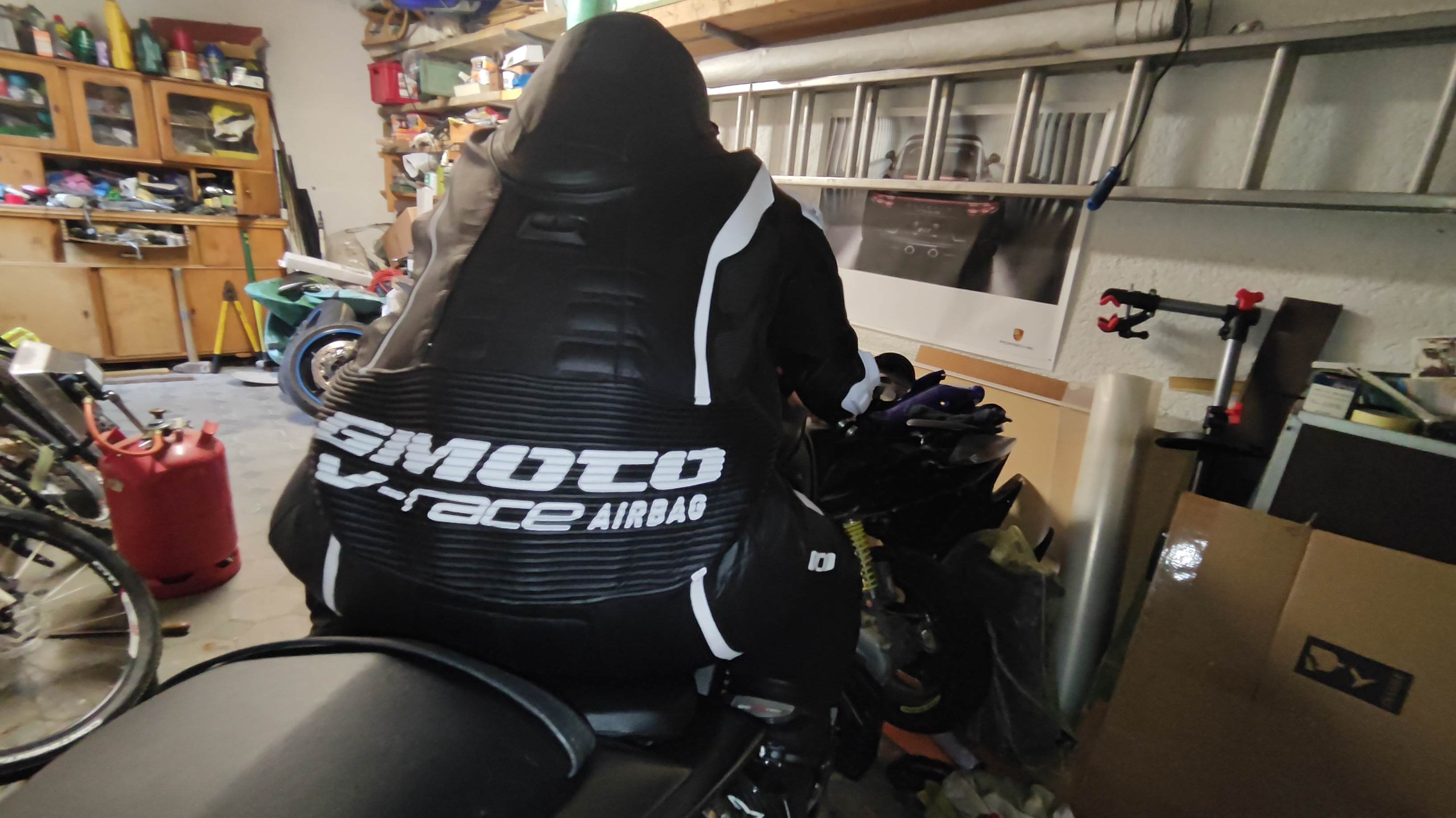 Hier noch ein paar Bilder auf dem Moped, da sieht es wiederum bis auf die Falte an der Seite normal aus.