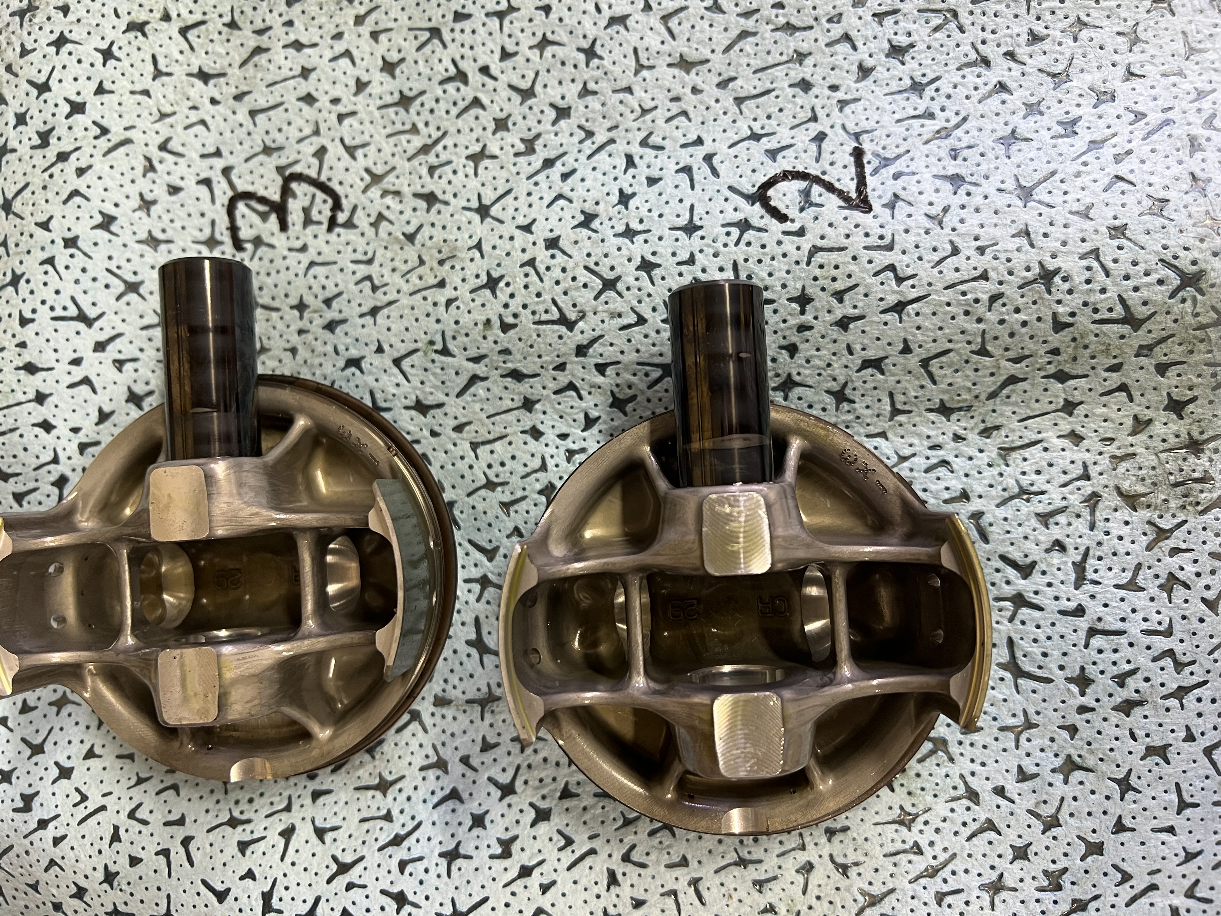 Die Pleuel sehen tatsächlich nach der Laufleistung noch super aus (soweit ich das Beurteilen kann), die Beschichtung der Kolbenbolzen vor allem am Zylinder 2 hat schon etwas gelitten.