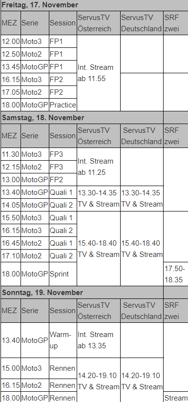 Sendezeiten Qatar Airways Grand Prix of Qatar 17. - 19. November 2023
