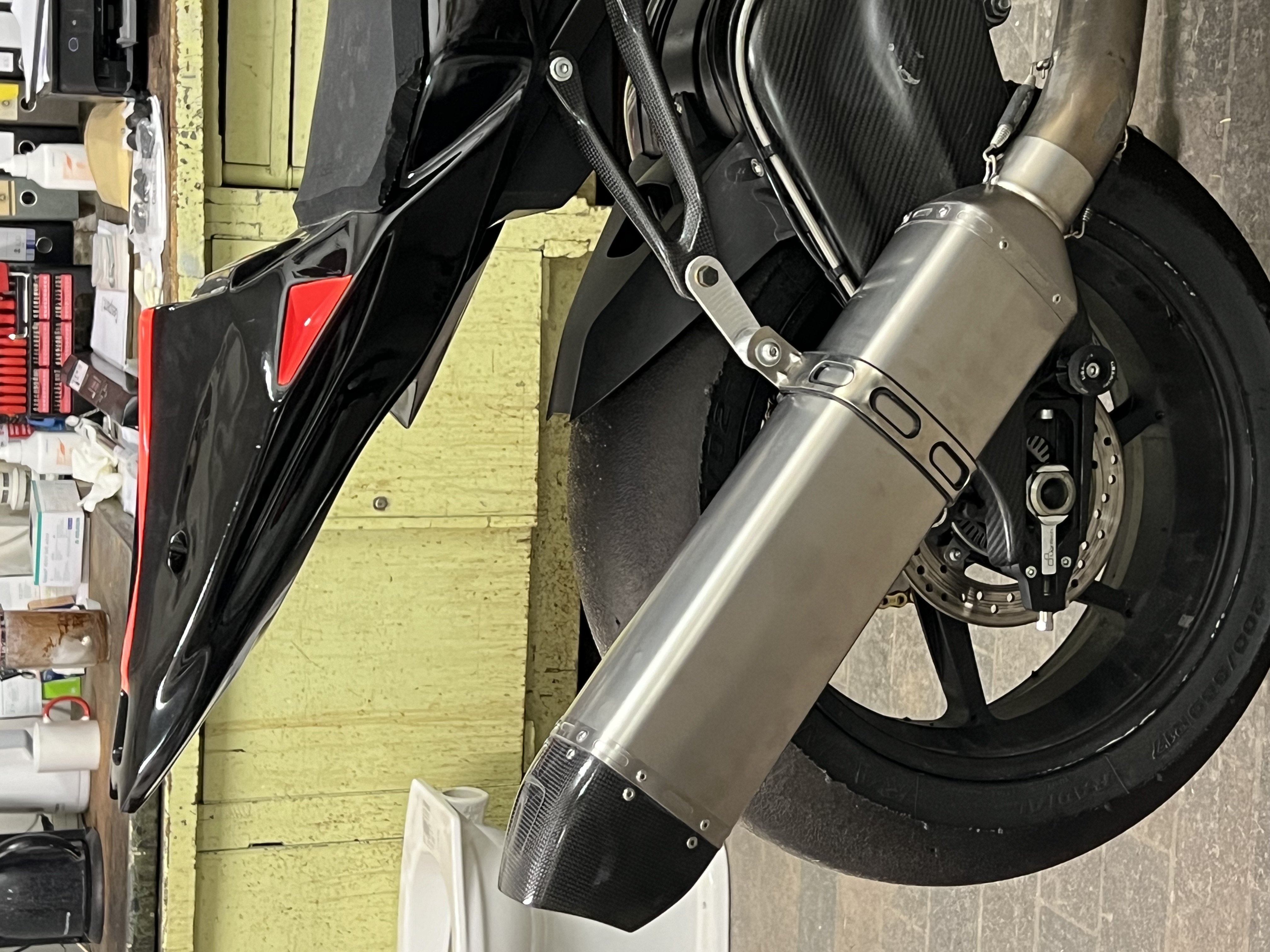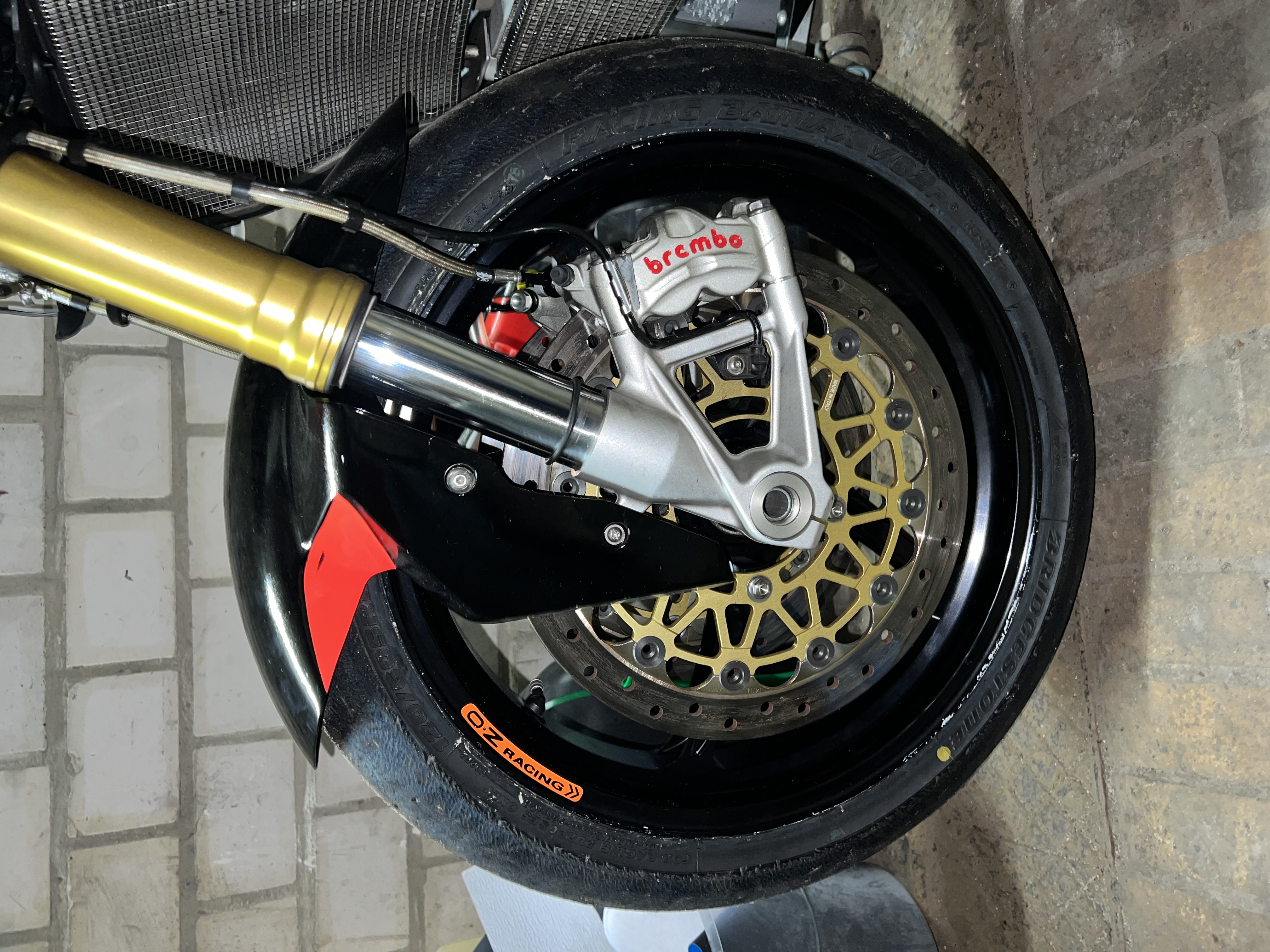 Als erstes ist mal das DDC rausgeflogen und wurde durch ein Öhlins-Cartridge, ein TTX-Federbein und einen Öhlins-Lenkungsdämpfer ersetzt. Zudem gab es eine GFK-Verkleidung von Stecki dazu, zu dessen Lackierung ich noch kommen werde.