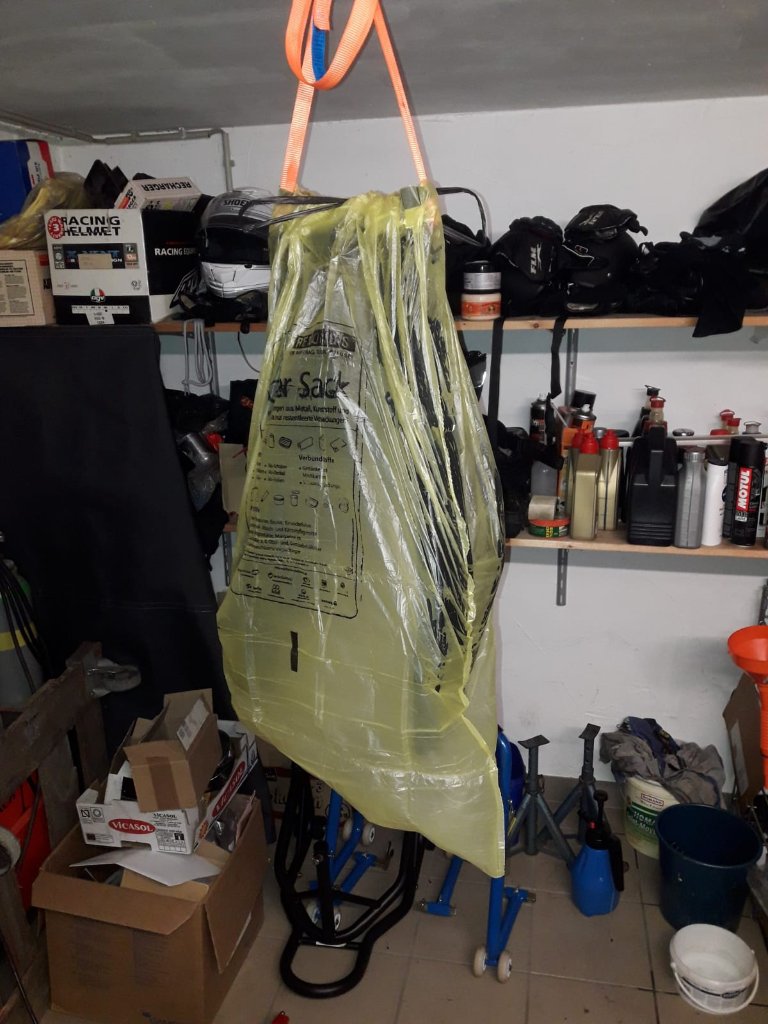 Als erstes habe ich die Schwinge aufgehängt und dick mit dem Colour-EX eingeschmiert. Das Ganze in eine Tüte gehüllt, ließ ich den Entferner erstmal 24h einziehen.