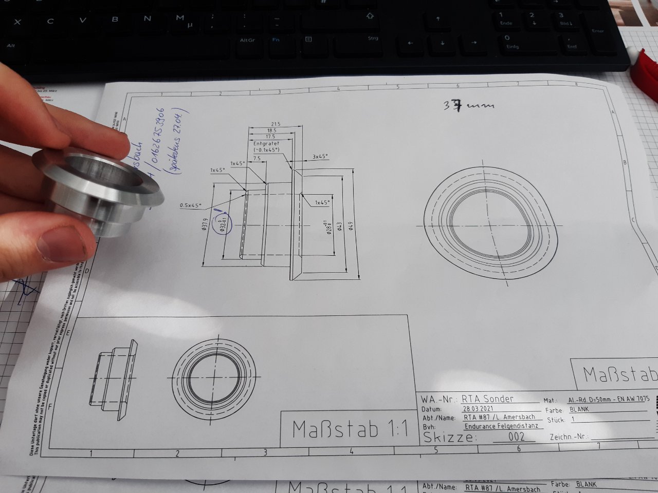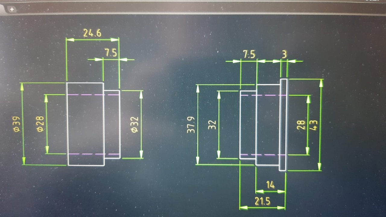 Die Lösung des Problems lag in meinen eigenen Fähigkeiten und Kontakten. Da ich zeitnah keine passenden Teile beschaffen konnte, entwarf ich diese kurzerhand einfach selber und ließ sie mir durch einen bekannten an einer CNC Drehmaschine aus AW 7075 Dura- oder im Volksmund Flugzeugaluminium anfertigen. Das Rohmaterial hierfür gibt es auf ebay.