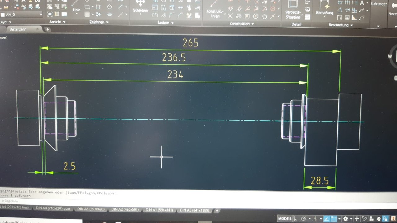 Das irgendetwas mit den Raddistanzen nicht passt kam nur durch Zufall heraus weil ich gerne feste Distanzhülsen mit Fase haben wollte, damit diese nicht mehr herausfallen können und sich leichter montiere lassen.