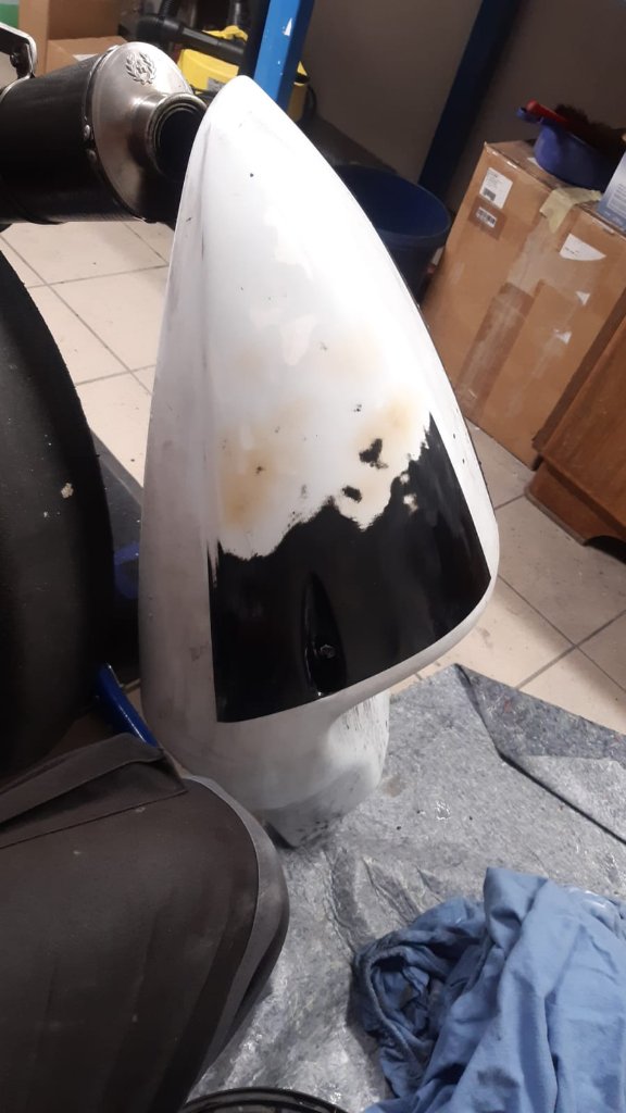 Die Verkleidung ist jetzt endlich angepasst. Der Bug liegt am Krümmer an und ich warte noch auf die Hitzeschutzfolie, um einen heißen Auftritt zu vermeiden.