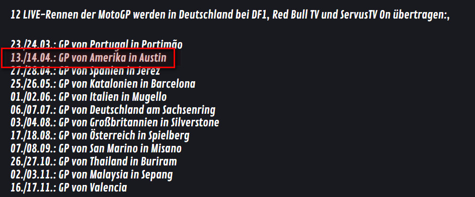 Müßte auf ServusTV kommen: https://www.racing4fun.de/motogp/