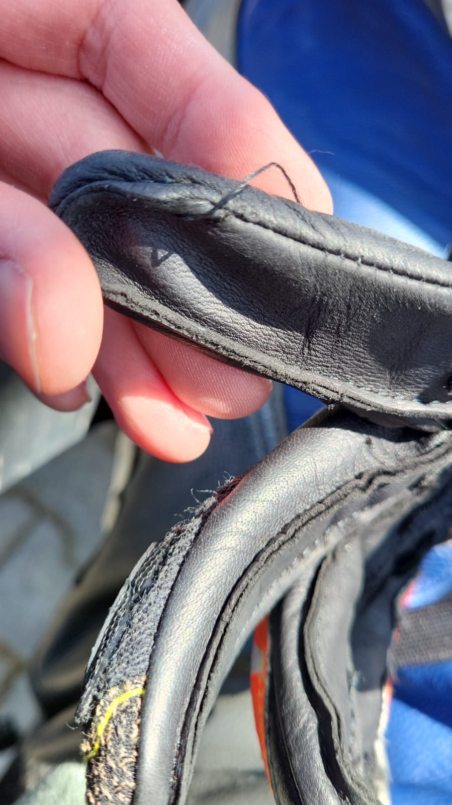 Beim anziehen zum Start der Saison hat mir mein rechter Zeigefinger entgegengeschaut. Da hat sich der Faden der Naht die die beiden Lederteile zusammenhängt einfach ausgefädelt.