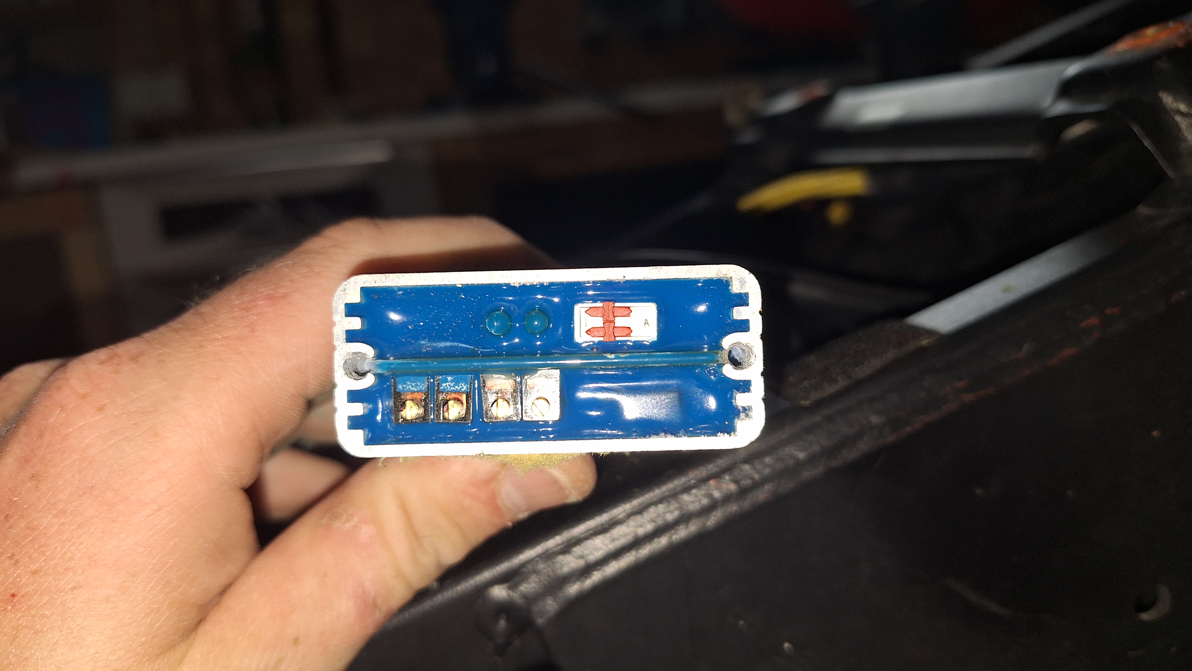 Ich hab jetzt durch Try and Error rausgefunden dass der Schalter oben dazu da ist um das Schaltschema umzustellen. Die beiden rechten Einstellschrauben sind für die Auslösekraft und die beiden linken für die Unterbrechungszeit
