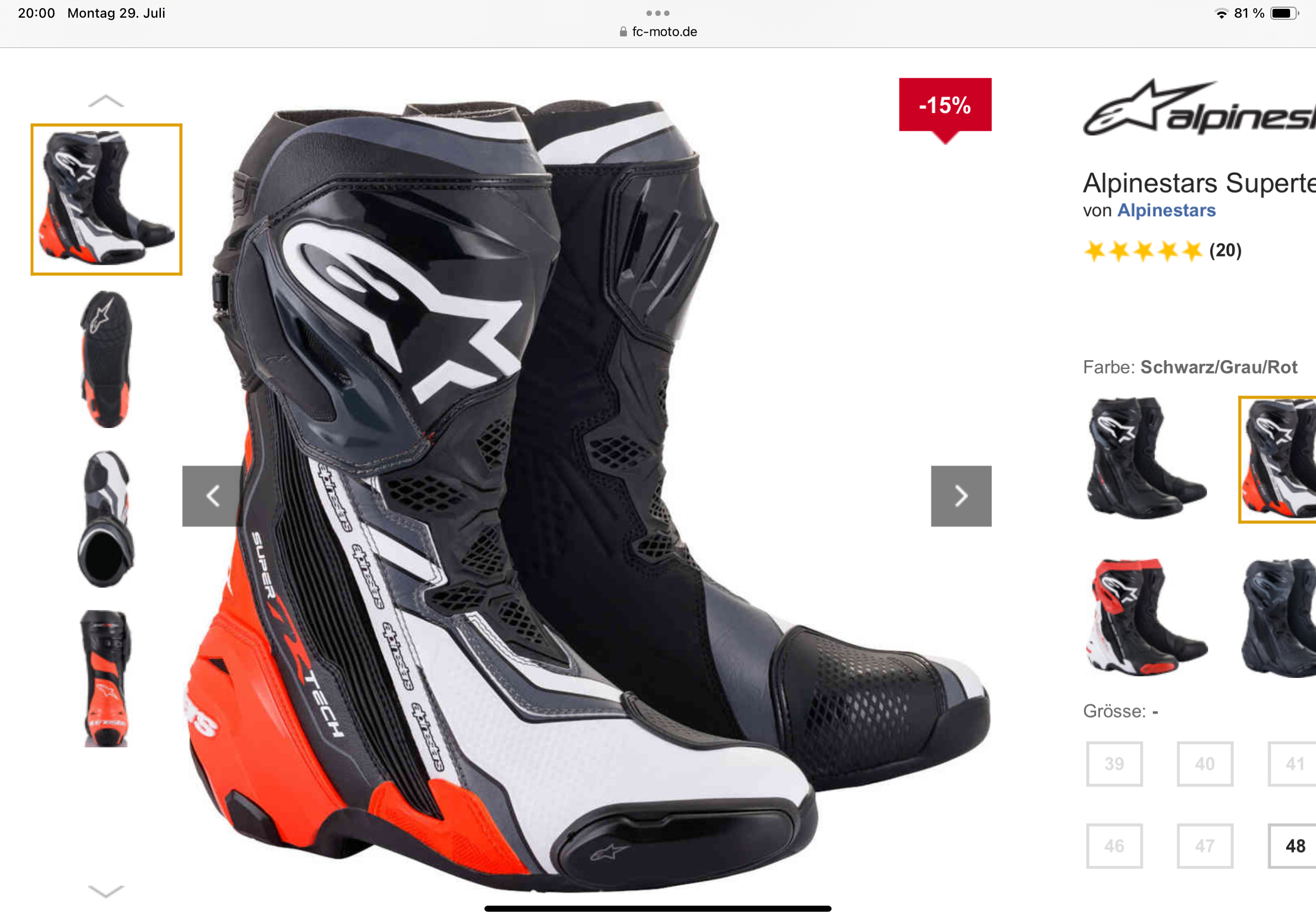 Ich möchte mir neue Alpinestars Supertech R Stiefel zulegen, ich habe schon welche, bin zufrieden, aber diese sind nach nun 14 Jahren durch.