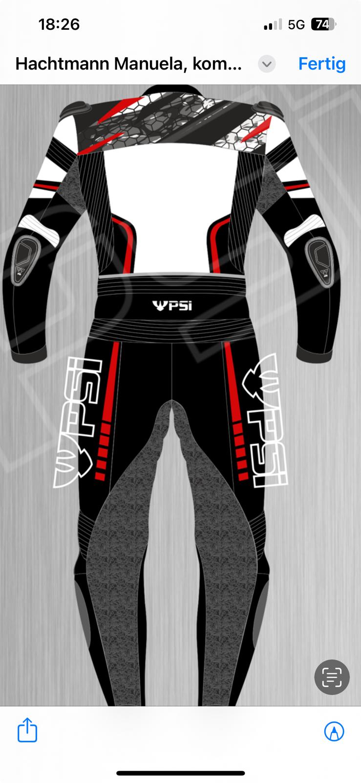 Ich war 10.2024 in Pilsen zum vermessen eines Einteilers Känguru/Rind mit integrierter TechAir10 Weste. In 12.2024 war diese bereits fertig, also sollte ich zur Anprobe bitte nach Pilsen kommen. Bei der Anprobe zeigte sich dass die Kombi so gut wie überall zu eng ist. Weder konnte ich in den Hang-off noch mich hinter das Windschild legen, da es hier zu großen Spannungen kam. Die Kombi blieb also vor Ort zur Nachbesserung. In 01.2025 wurde diese dann nachgebssert via Paket mir zugesandt.